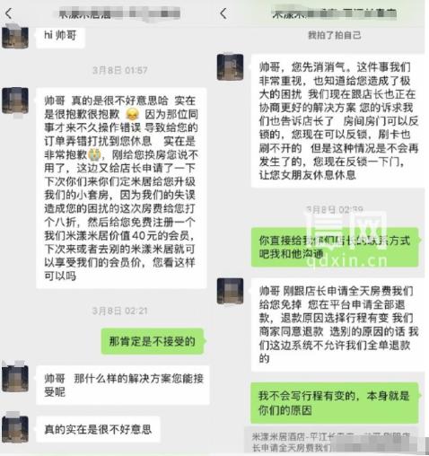 看吴先生态度强硬,店长随后亲自出手协调,答应全额退那一百七十块钱房费,但条件特别奇葩——吴先生退房的时候,退房理由必须选择“行程有变”。