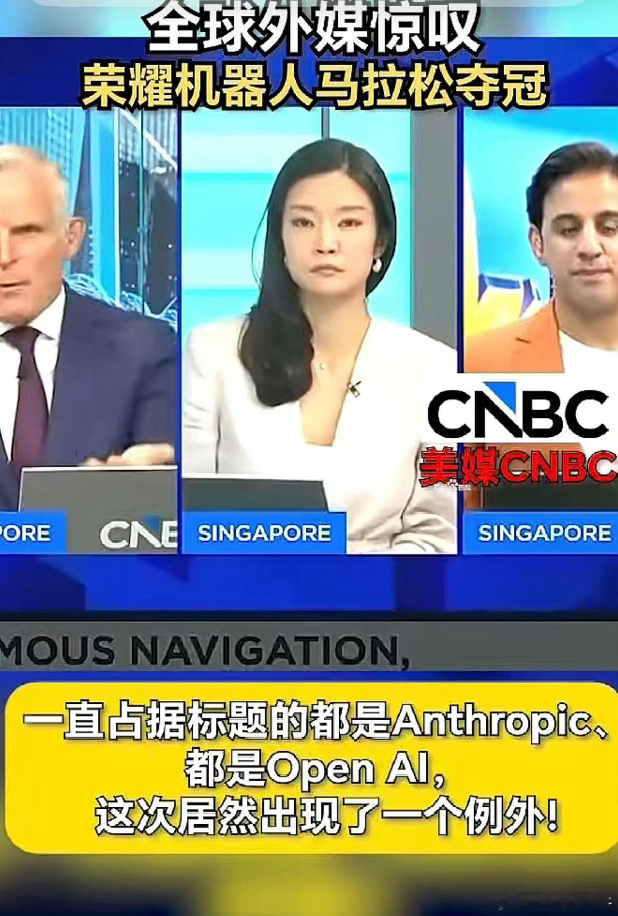 中国机器人破半马纪录引外媒热议荣耀机器人刷新半马纪录,展现超强科技实力!稳健步伐