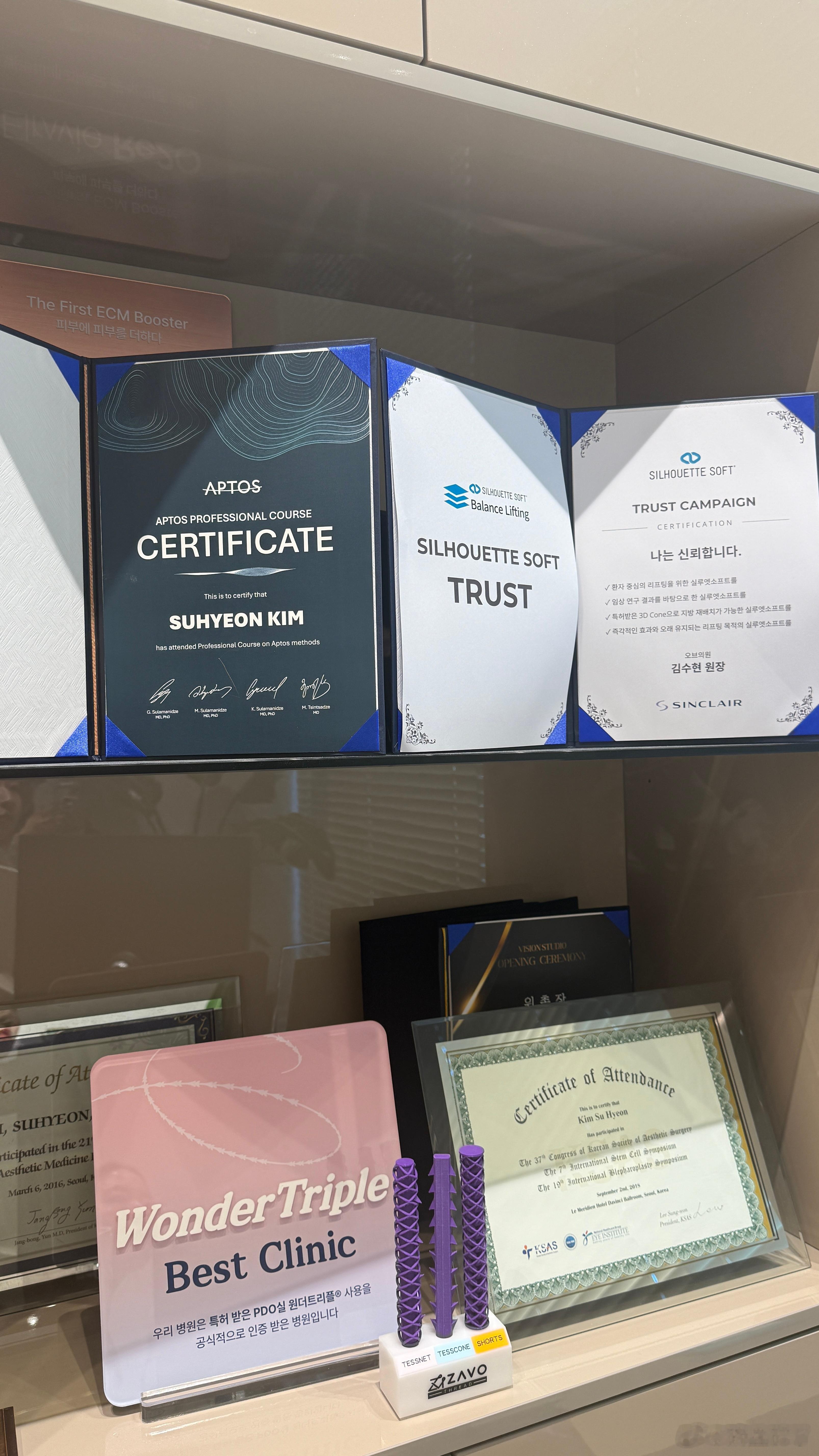 别小看这个,在韩国这种认证通常意味着材料是品牌直供,操作流程也按厂商标准来,对材料真假、术后稳定性、安全性都更友好。