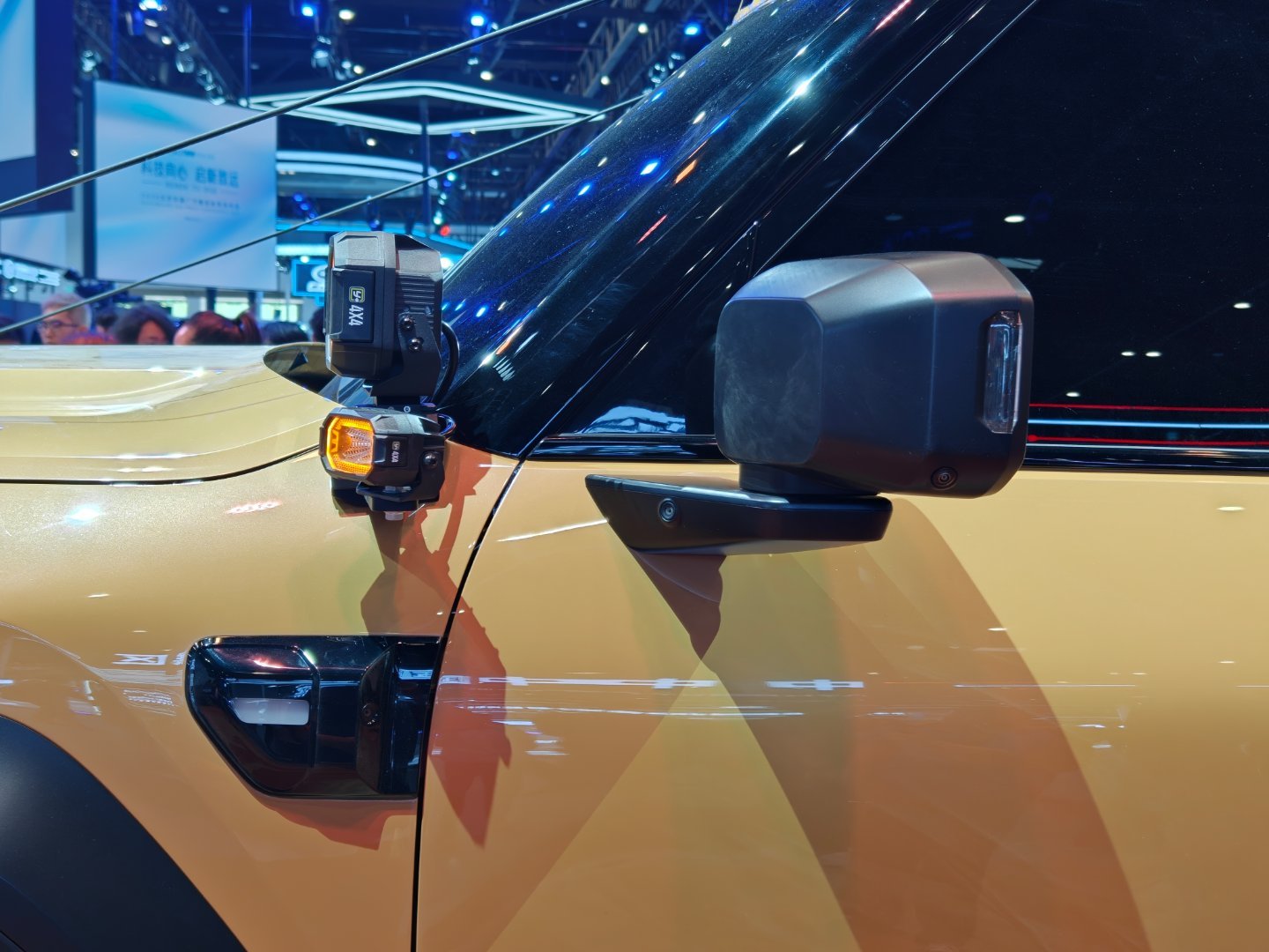 侧面整体设计同样方正硬朗,D柱部分也显得十分宽阔。尾灯采用双梯形设计,并呈现出梯形造型,中间位置疑似配备自驾小蓝灯。此外,该车还搭载了激光雷达及辅助驾驶功能。
