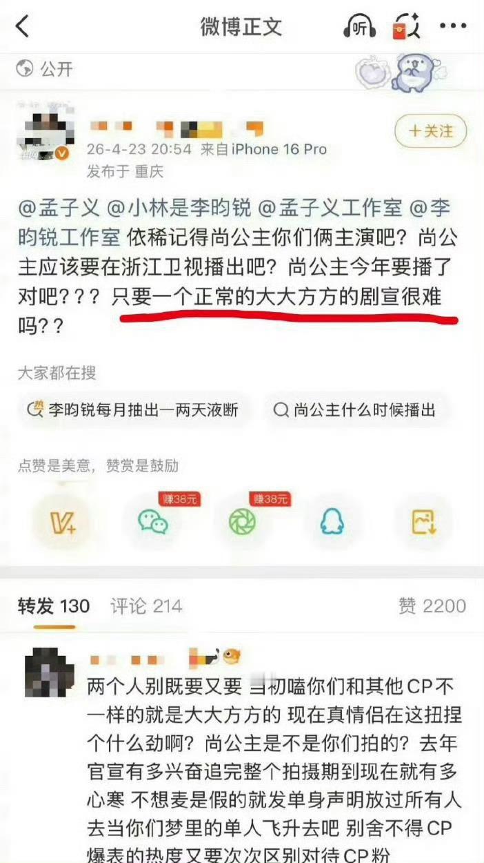 孟子义、李昀锐在跑男避嫌,《尚公主》也不合体宣传冷处理,cpf已经破防了