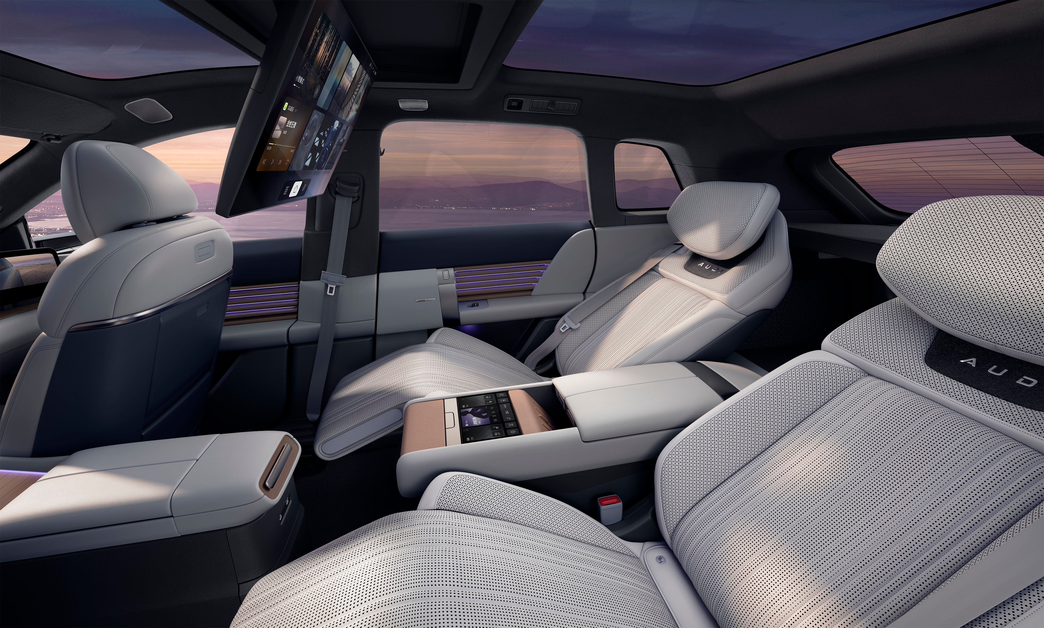 奥迪全新智慧客厅内饰揭秘今年北京车展真是神仙打架,太卷了!但要说一眼圈粉的,还得是奥迪E7X!作为奥迪第二款纯电车型,奥迪E7X是奥迪全球电动化转型的新标杆,坚守与突破并进。它打造的“奥迪智慧客厅”座舱,体验太赞了!车内大面积采用 FineNappa 全粒面小牛皮,保时捷同源,但筛选标准严到变态,A级头层原皮中只取最好的5%,有蚊虫叮咬痕迹都直接淘汰。从座椅、仪表台到扶手,触感细腻亲肤,筛选标准是奢侈品包袋级的,豪华感贯穿全车。前后排座椅配置平权,加热、通风、按摩、腿托一应俱全,最好听的女王副驾标准零重力座椅,后排准零重力座椅,都自带Bose近场头枕音响,四座版还有氛围星空顶发光天幕和后排独立隔断,私密感直接拉满,再搭配21.4英寸超清大屏,防抖防眩晕,座舱轻松变身移动家庭影院。一直以来奥迪都坚持原创设计、豪华质感,把安全和操控放在核心位置,这台奥迪E7X直接把驾控、座舱、智驾全都拉满,实力在线、颜值能打,妥妥是本届北京车展不能错过的重磅选手。你去车展试奥迪E7X没?这就是北京车展