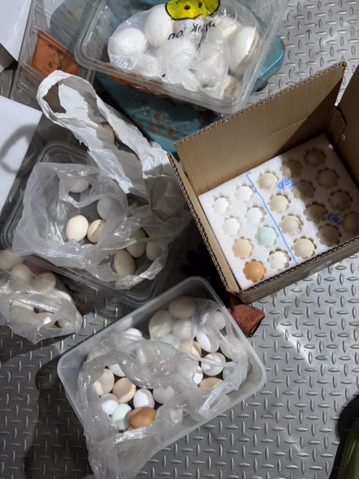 白羽鸡下红皮蛋,我还是头一回见。 一般老品种的海南褐下红皮蛋,这种