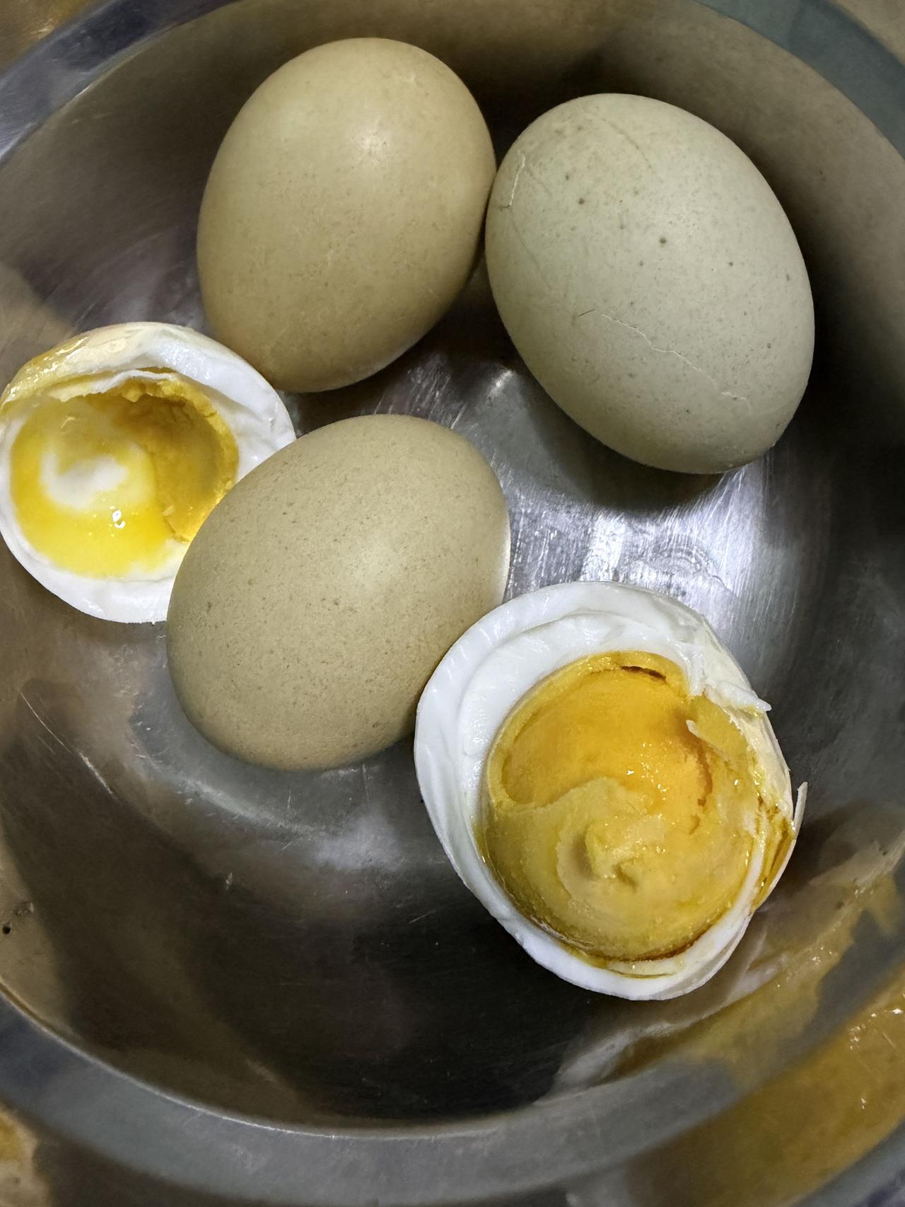 这次腌的咸鸭蛋比较成功,咸淡正好,出油了。发快递鸡蛋不够,煮来自己吃的,装四枚咸鸭蛋在里面,到家直接吃。