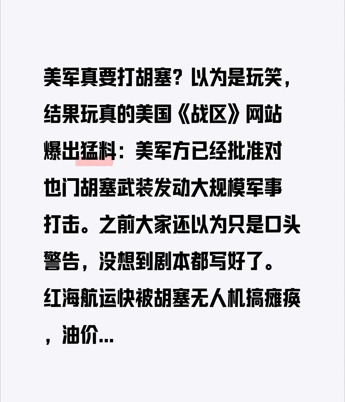 美军真要打胡塞?以为是玩笑,结果玩真的 美国《战区》网站爆出猛料:美军方已经批