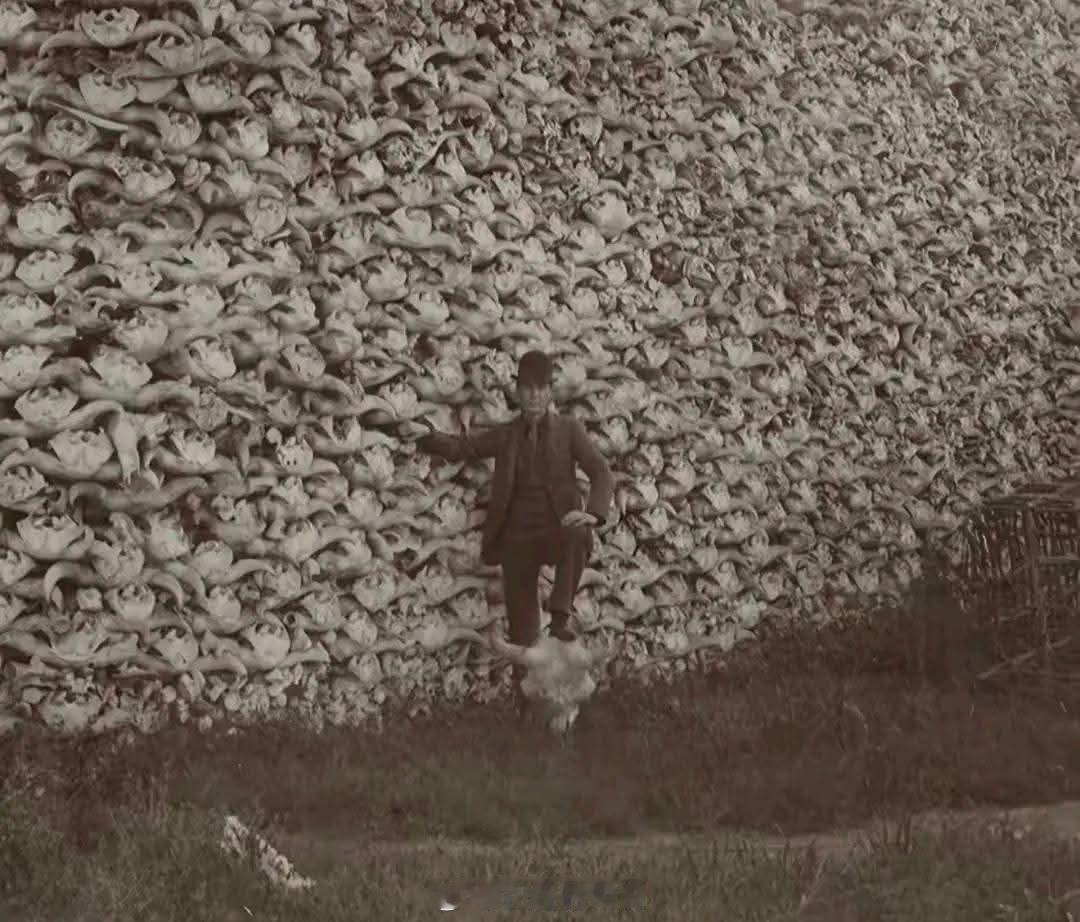 到1880年,对美洲野牛的近乎种族灭绝使它们的数量从3000万至6000万减少到不到1000头