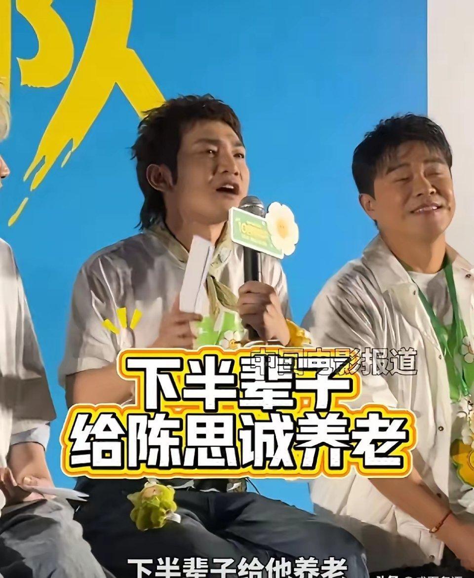 陈思诚,有福气了!4月24日,电影《10间敢死队》首映礼上,蒋龙一句话把全场笑趴了:“我下半辈子给陈思诚养老!” 这到底是怎么回事呢?事情是这样的,主持人问:“陈思诚落水,谁先第一个跳下去救他?”蒋龙秒举话筒:“我!陈思诚导演顶着压力选择我来演,他对我这么好,我下半辈子给他养老!”话音刚落,陈思诚笑到扶额,视线却直接锁定观众席的儿子朵朵:“朵朵,有人跟你抢活儿了,怎么办?” 原来朵朵也来现场了,不得不佩服,陈思诚的情商和应变能力,仅凭这一句话就把场子热起来了。蒋龙能这么“豁得出去”,不是没原因的。他从喜剧舞台一路打拼,这次被陈思诚挑中当男主,是实打实的事业转折点。所以这声“养老承诺”,听着是玩笑,其实是带着感恩的真诚。网友也跟着凑热闹:“朵朵:爸,这活儿我不干了,让蒋龙来!”“蒋龙这是把‘报恩’玩出了新花样啊!”内娱这些年,虚伪客套见多了,蒋龙这种直来直去的感谢反倒显得特别珍贵。说到底,演员和导演之间的信任,不就该是这样吗?你敢给我机会,我就敢用真心回馈,哪怕是一句“养老承诺”,也比那些空泛的夸奖来得动人。!