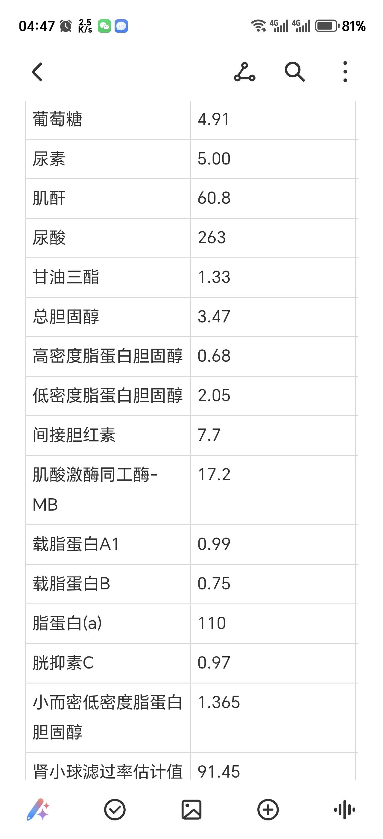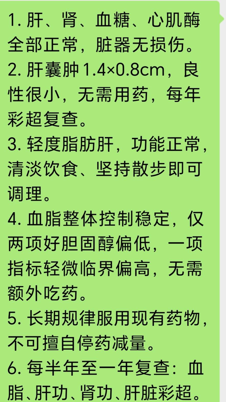 一年中,做过两次体检,从检查结果看,各项指标还控制的不错。