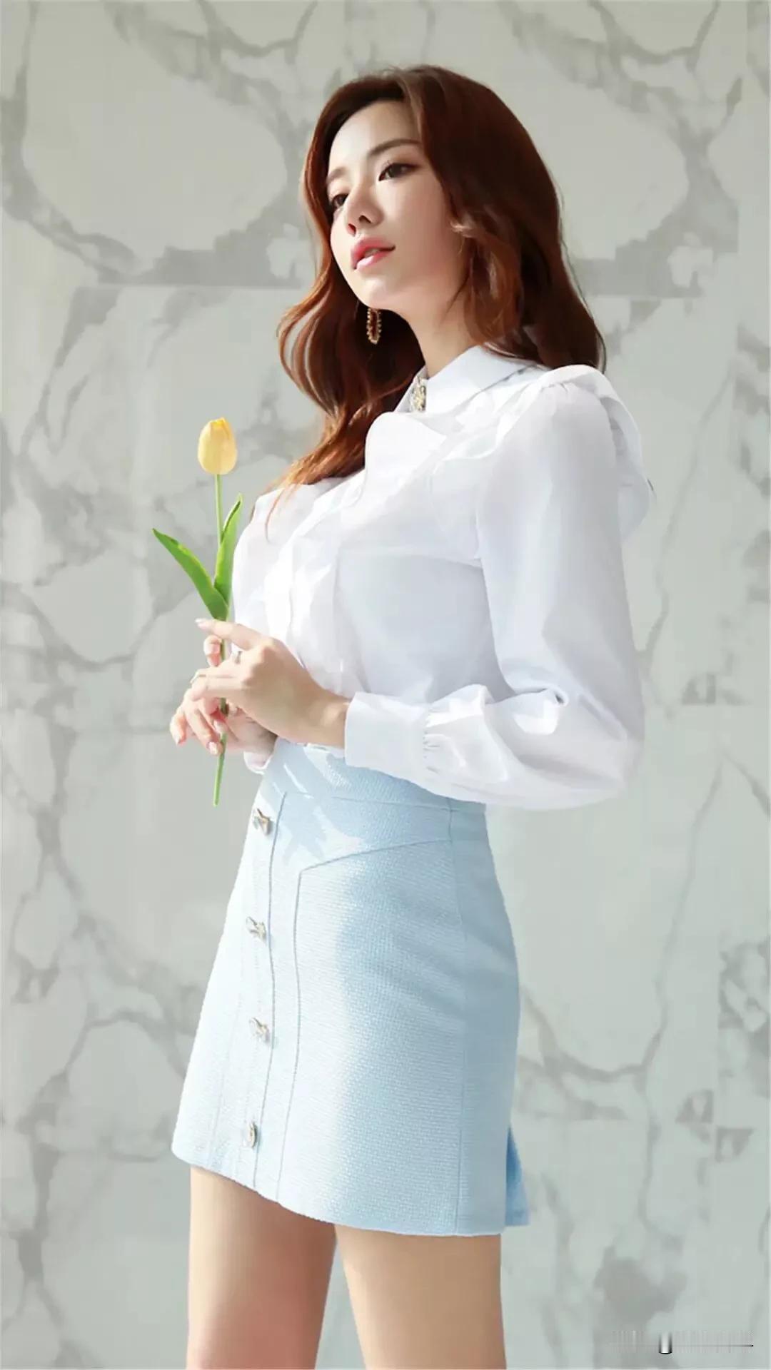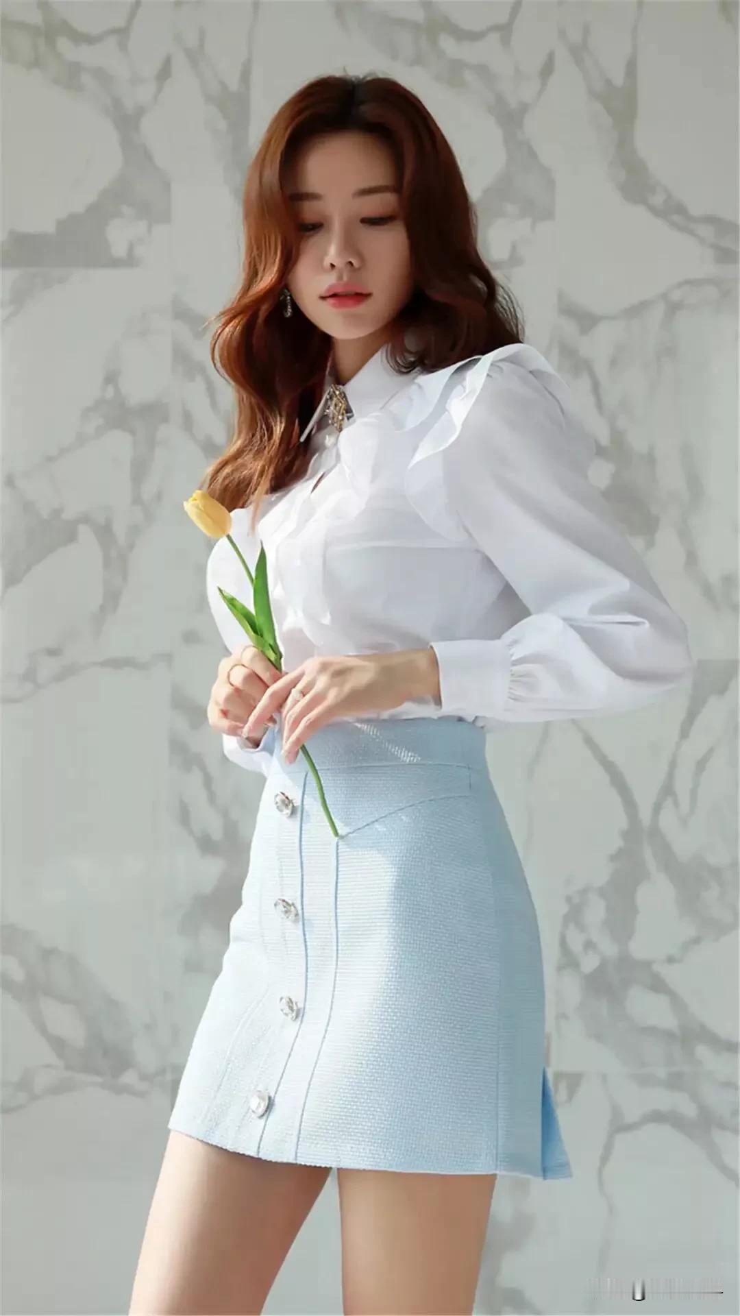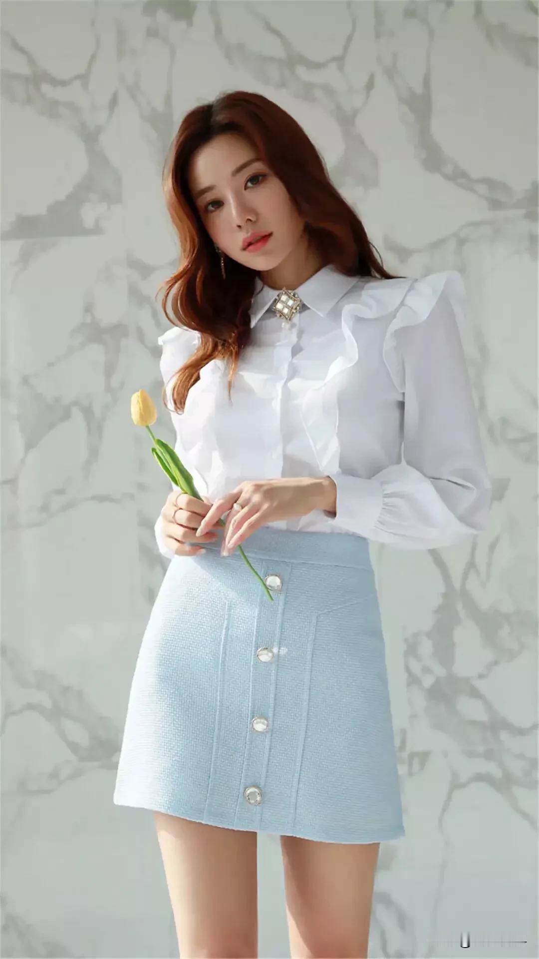 白衬衫和浅蓝色短裙的搭配,简直是清新优雅的代名词!就像国庆出游那套穿搭里,白色娃娃领衬衫减龄又百搭,搭配浅蓝色短裙,青春校园感扑面而来。