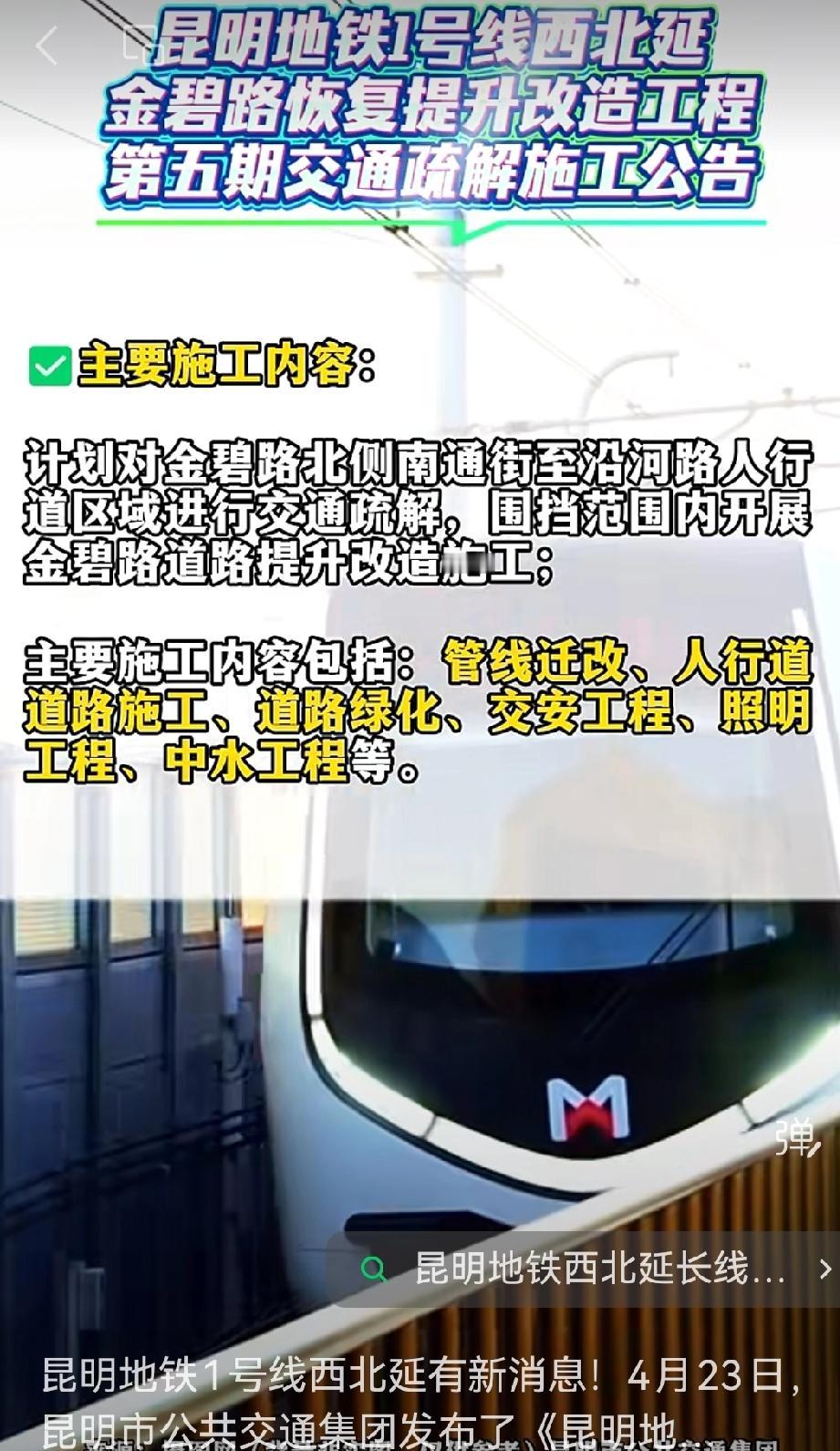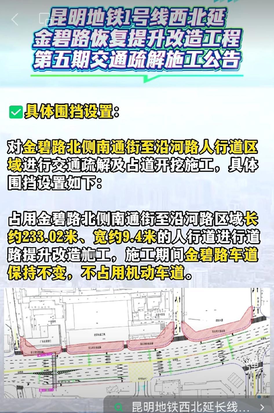 🚇4月23日,昆明市公共交通集团发布了金碧路恢复提升改造工程第五期交通疏解施工公告。这意味着地铁建设又往前迈了一大步。