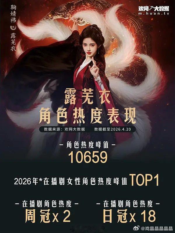 月鳞绮纪4.24收官。截止到4.23日,鞠婧祎各平台数据增量明显,算有效播剧,角色大出圈了!