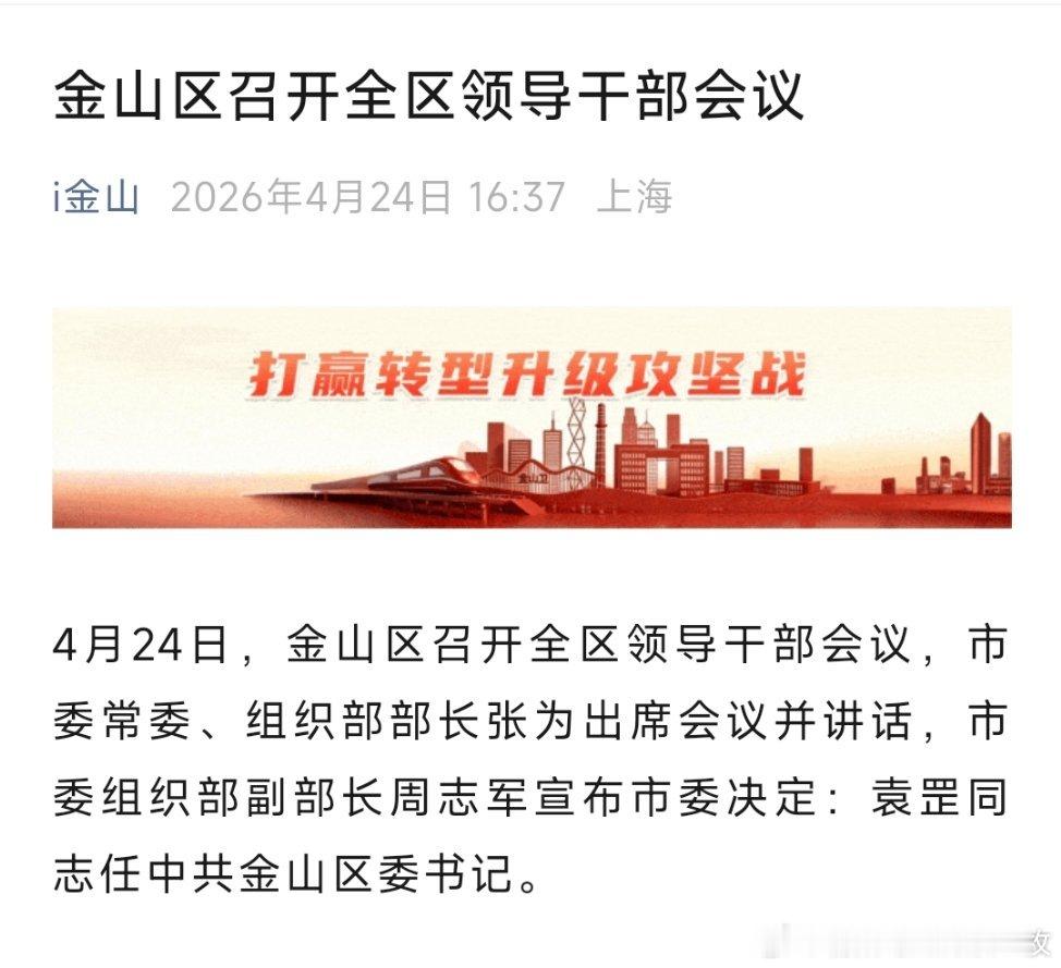 袁罡任上海市金山区委书记。
