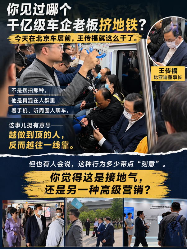 不是摆拍那种,他是真混在人群里看手机、听周围人聊车。