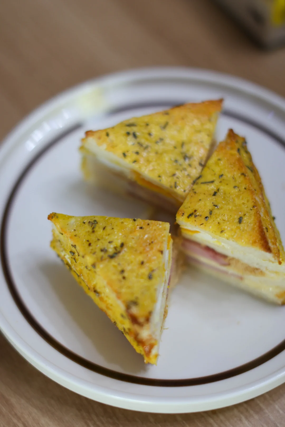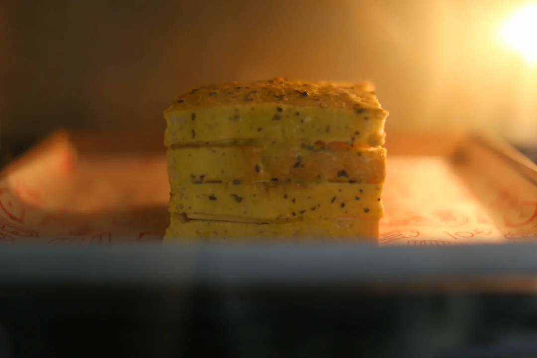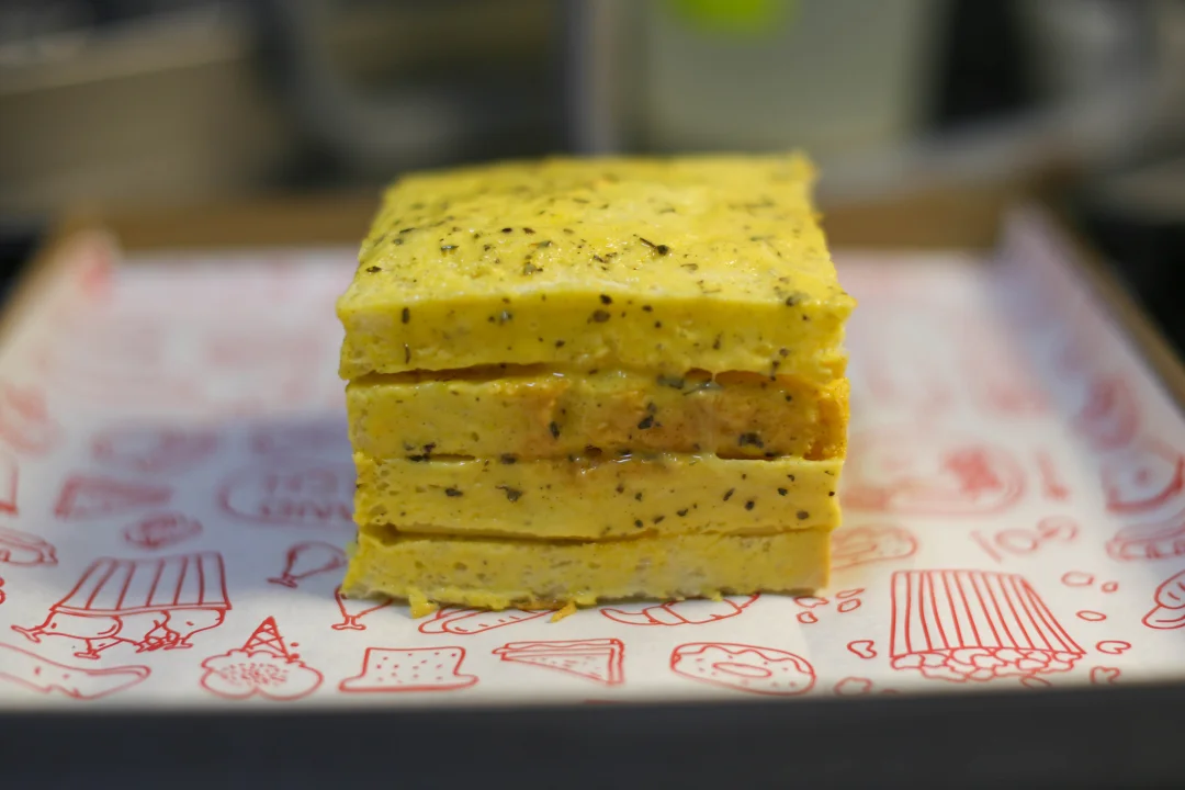 芝士和火腿是经典组合,又把肉松加到三明治里,咸甜交错,口感变得很丰富,一口咬下去,肉松酥酥的,火腿有嚼劲,芝士黏黏的,像是一个小型的味觉交响曲。