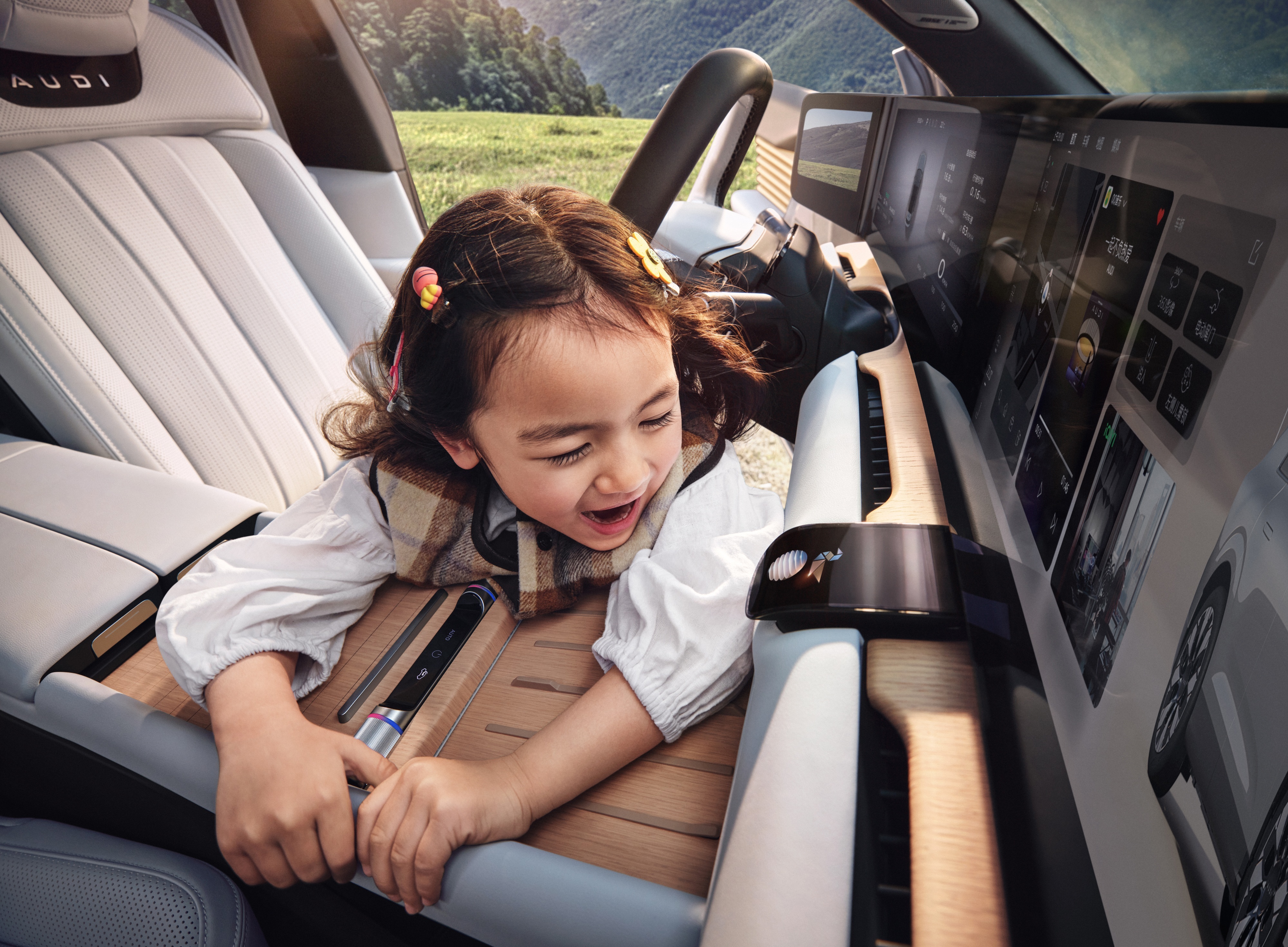 建议亲自去关上门,感受一下就懂。奥迪全新智慧客厅内饰揭秘这就是北京车展