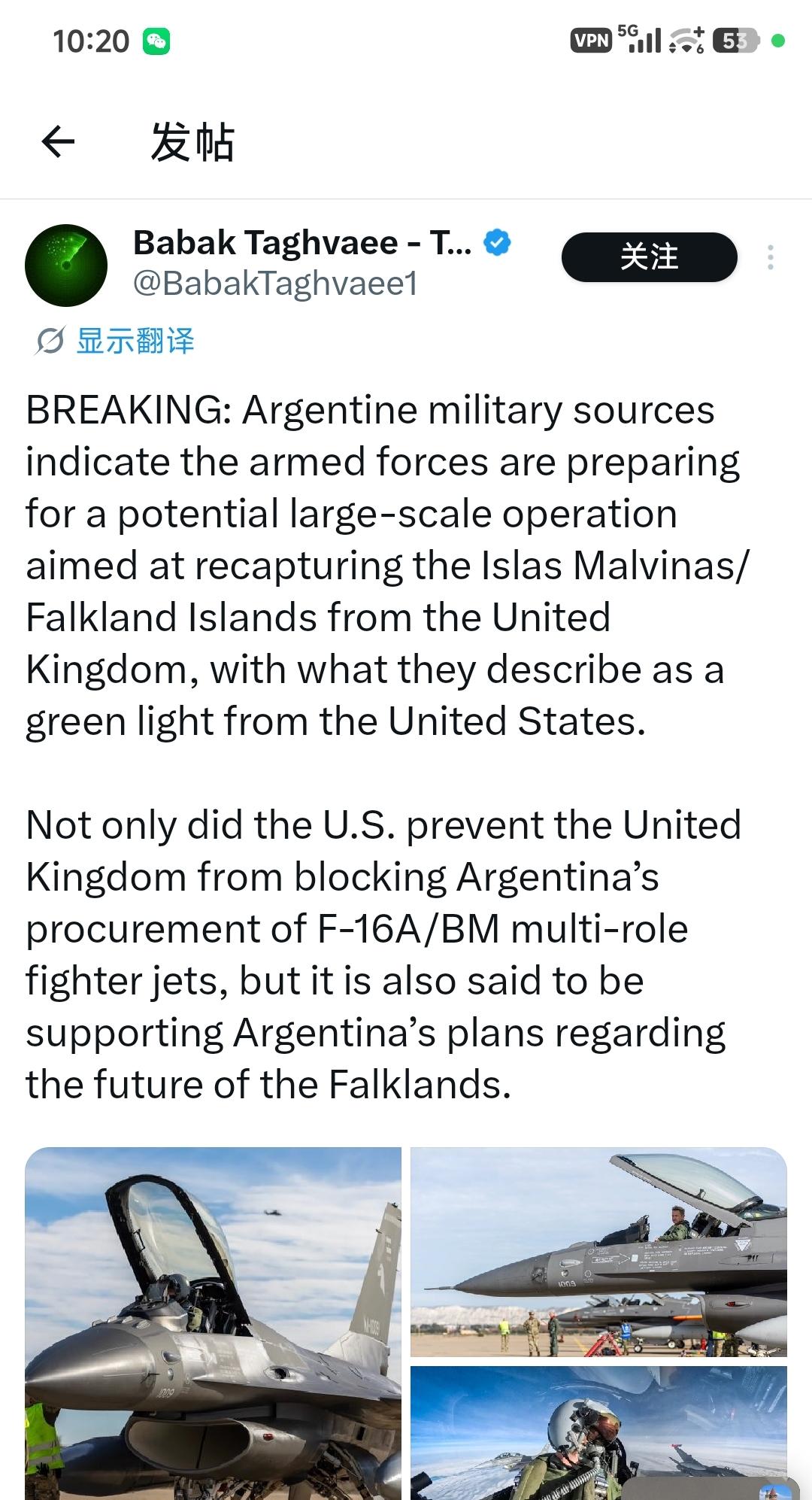 目前阿根廷海陆空三军装备老旧严重,主力舰艇老化退役、空军先进战机稀缺,即便新增了F-16战机,也只是小幅补强,无法形成跨海远洋作战的体系能力。