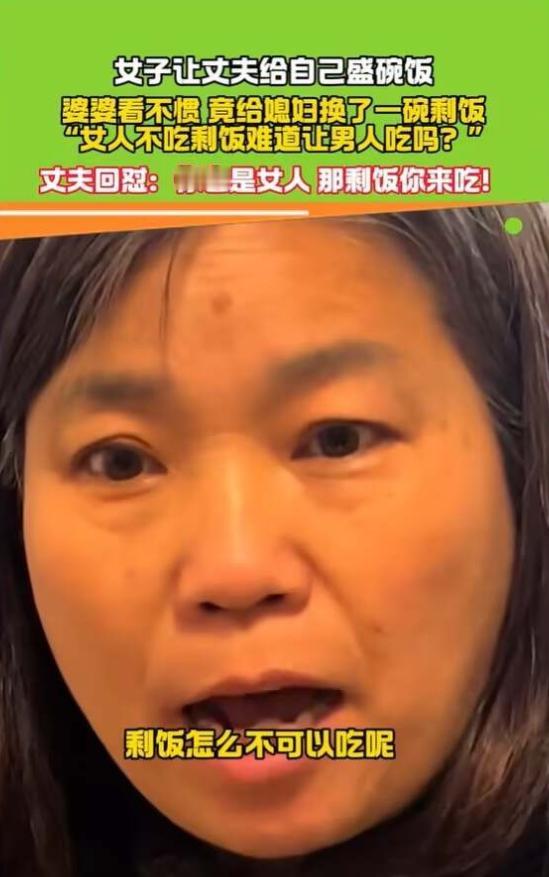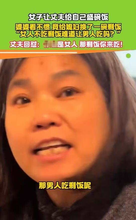 而婆婆却丝毫不掩饰自己的心思,反而理直气壮地开口,语气里满是理所当然的刻薄,直言女人天生就该吃剩饭,怎么能让男人吃这些剩菜冷饭,更不该随便使唤男人做事,在她看来,儿媳让儿子添饭,就是不懂规矩、不知分寸,是在挑战她心中的“规矩”。