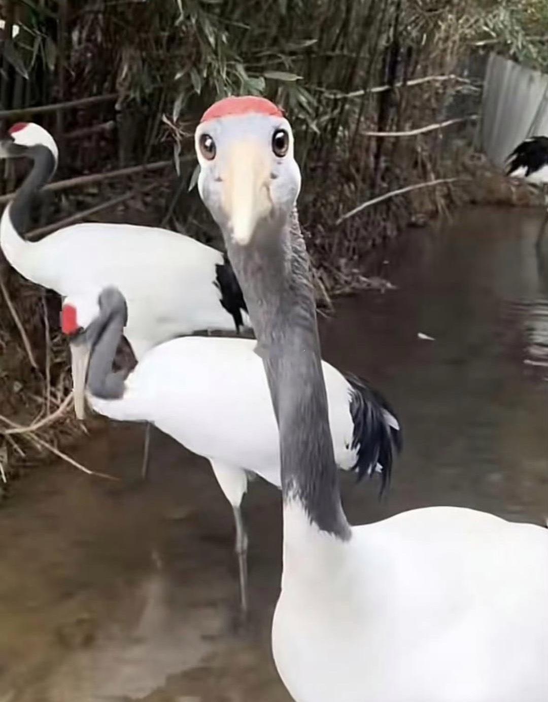 还有人不知道丹顶鹤头顶红不是因为毛是红的是因为没有毛吗