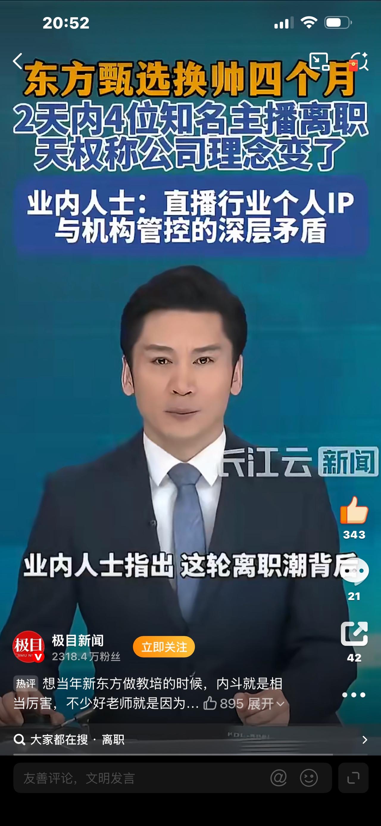 从董宇辉出走、顿顿离开,到如今四大元老集体离场,东方甄选的核心人才,几乎被“掏空”!