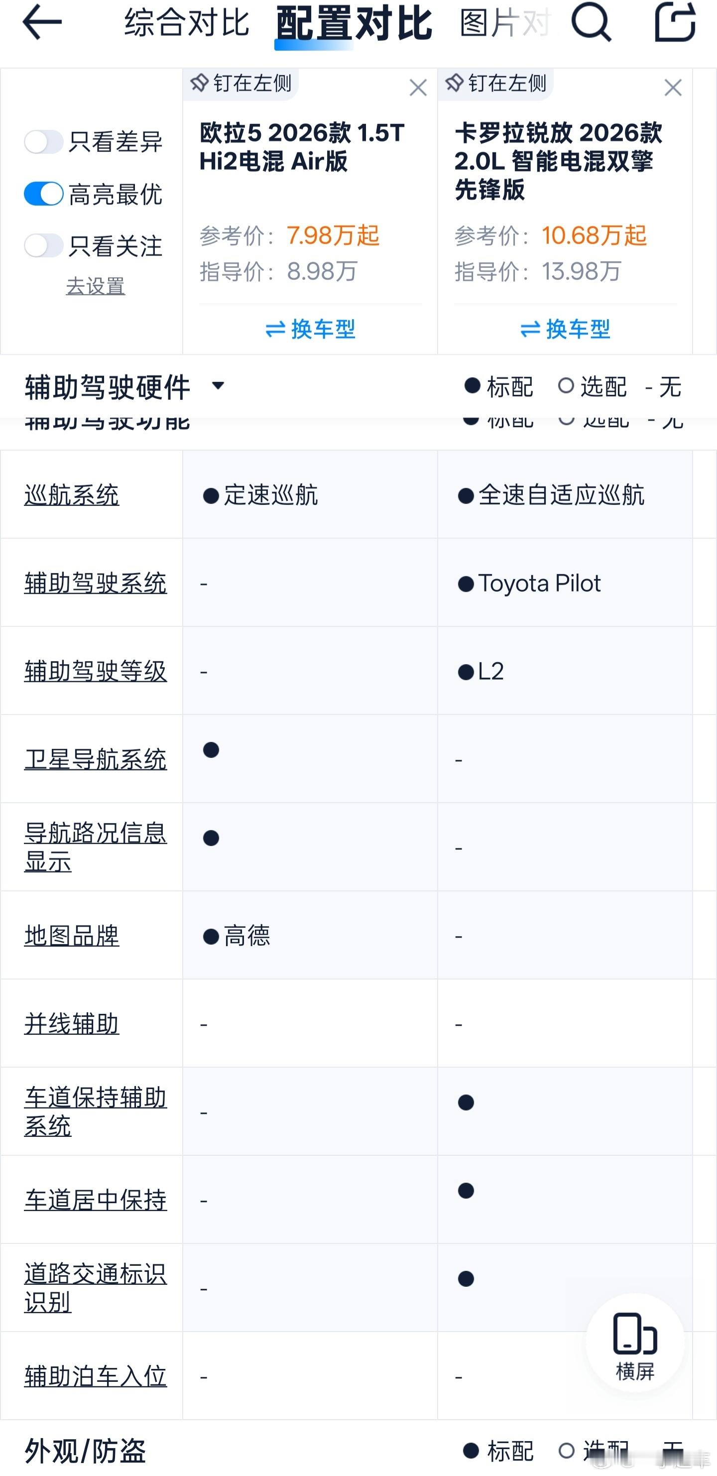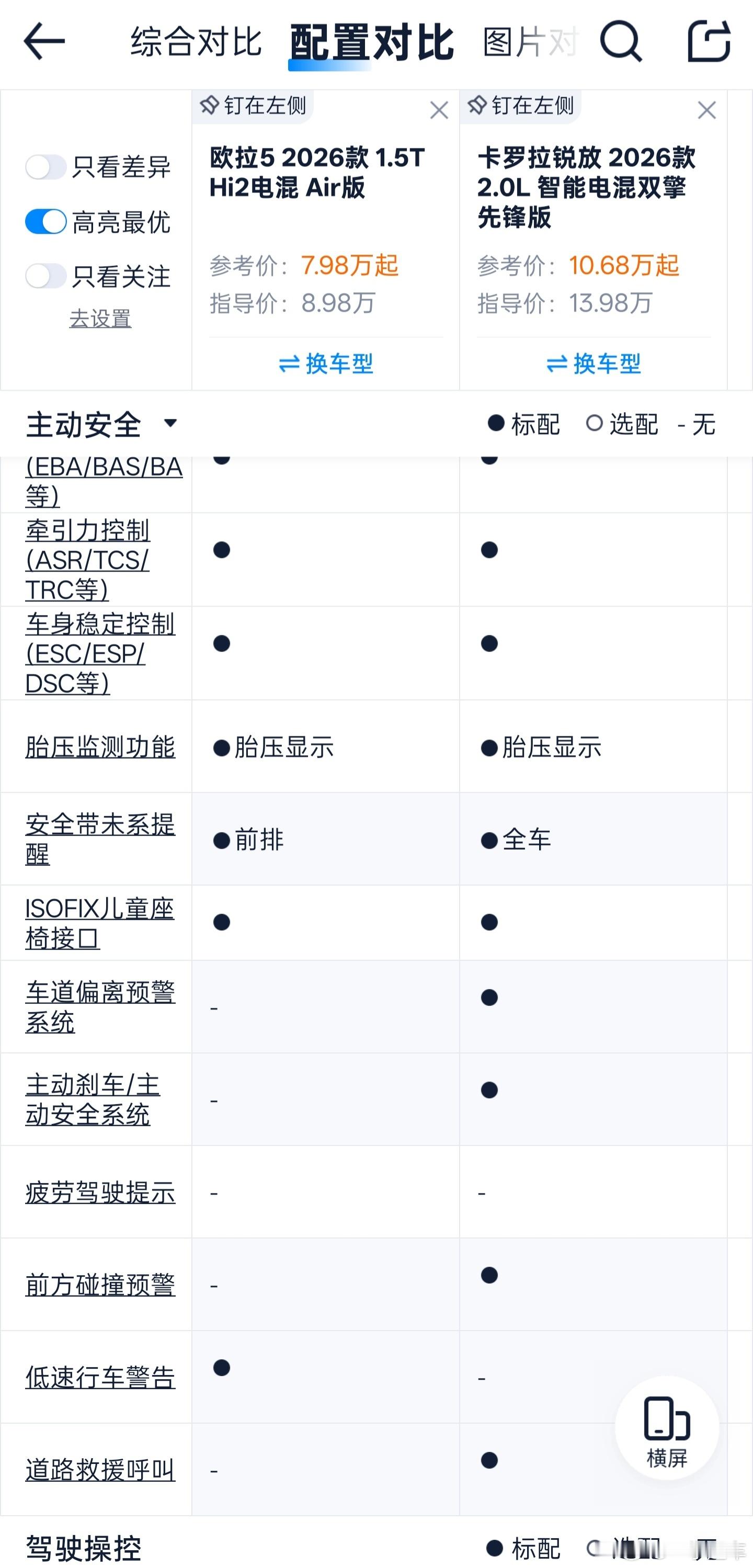 就说尺寸差不多的锐放混动,这车你别看指导价贵那么多,在大幅度优惠下也没贵太多。相比之下,欧拉5的绝对优势是动力、后多连杆、智能化,但锐放有的自适应巡航也是欧拉5低配没有的。不过我也不希望咱们的自主品牌只能靠配置超越合资品牌。
