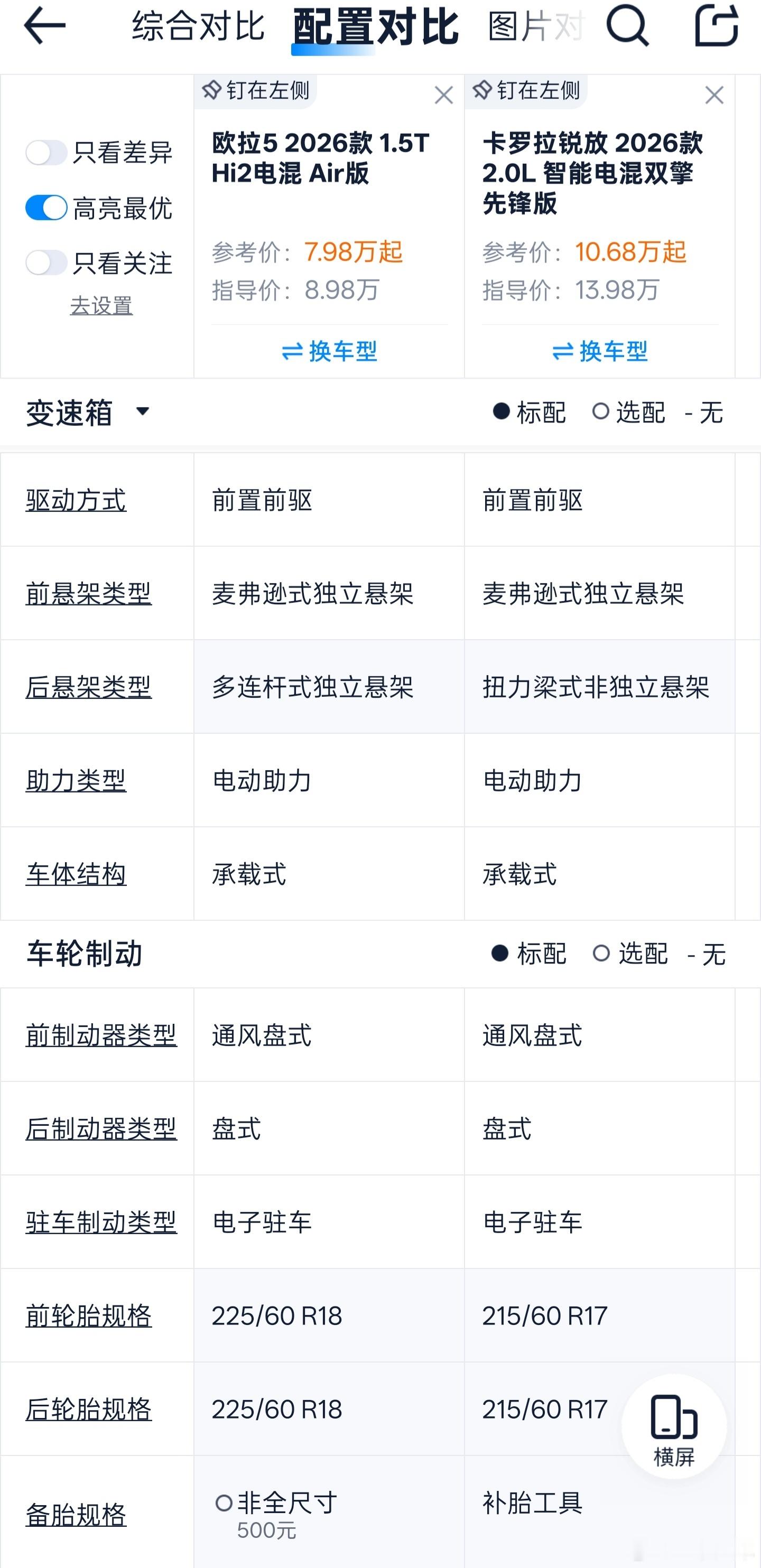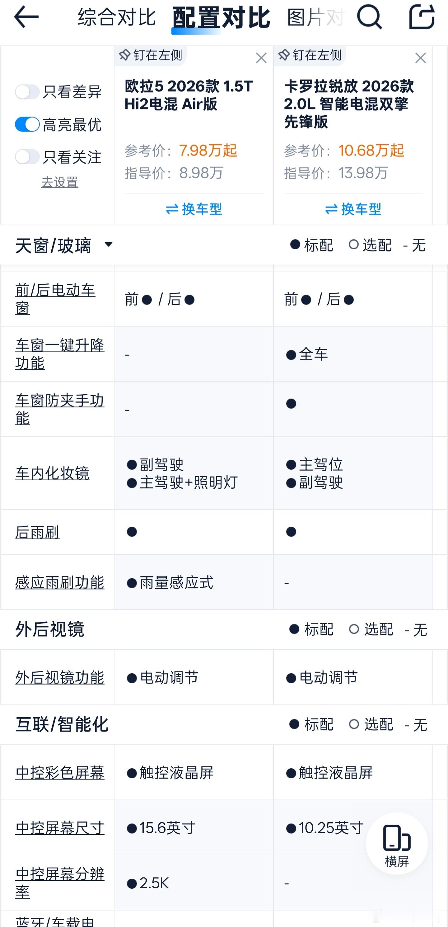研究了下欧拉5混动低配的配置,其实我发现它相比合资对手并不算碾压级的。