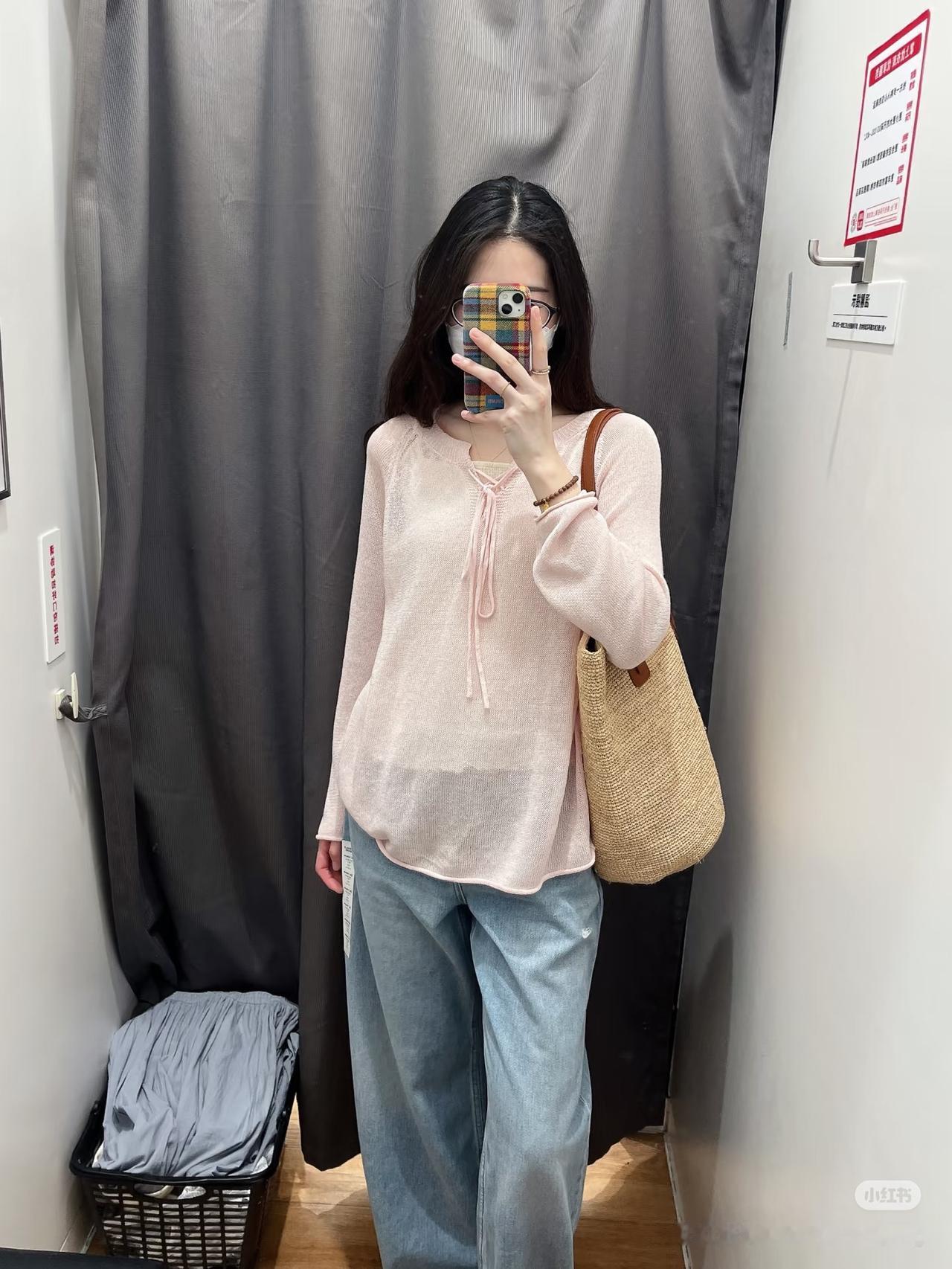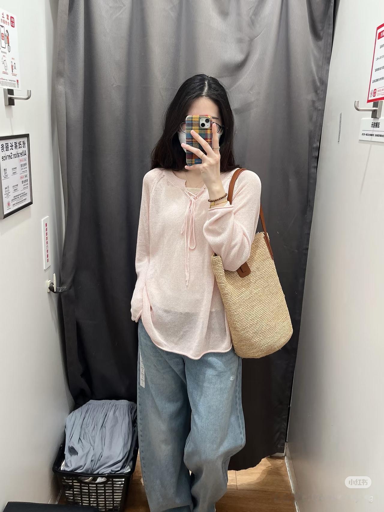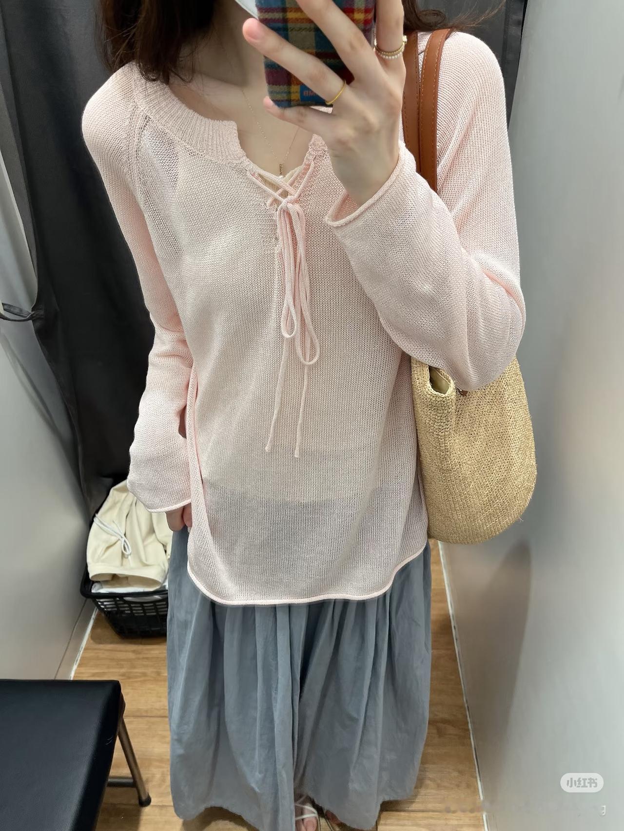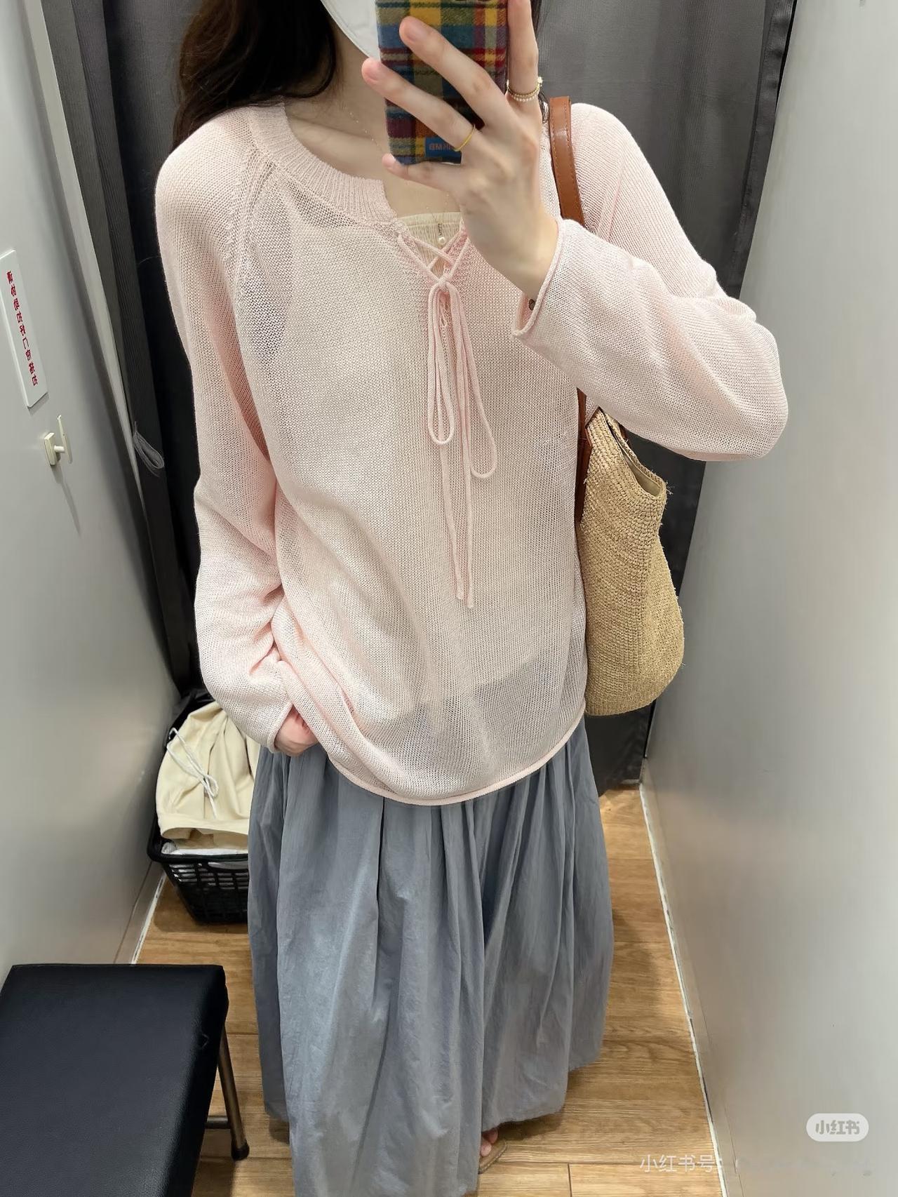 温柔和休闲感兼具的一件镂空针织衫,搭裤子和半裙都很不错~