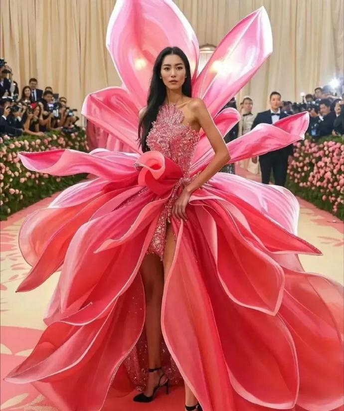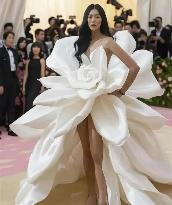 刘雯不愧是国际超模,这两套花朵造型真的美得很惊艳。