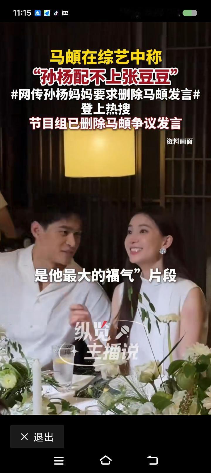 孙杨配不上张豆豆?—— 据报道,节目里,有嘉宾对张豆豆说:“孙杨能找到你,是他的