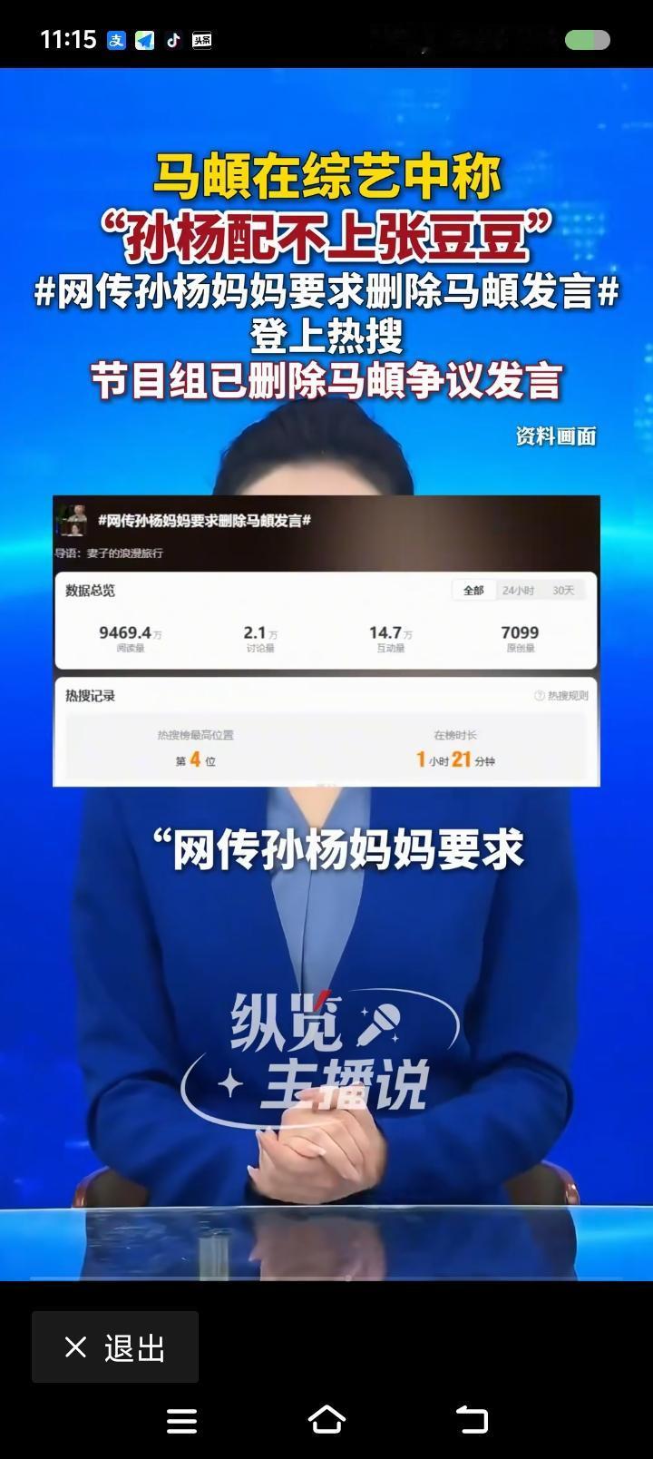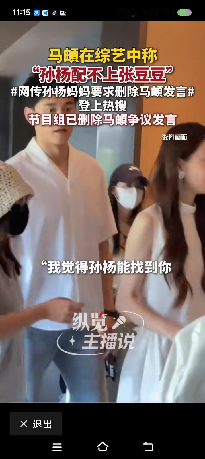 网传孙杨妈妈要求删除那句。节目组已删除争议发言。