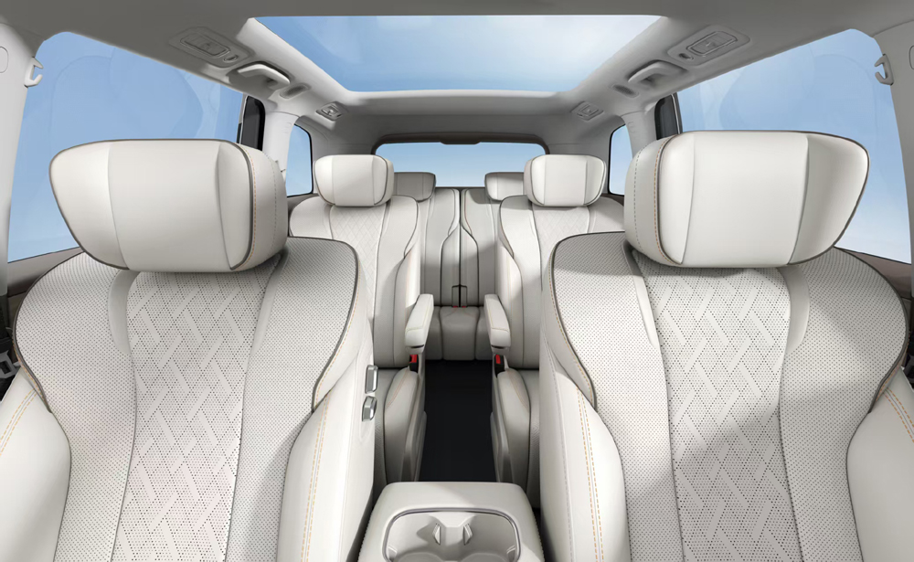 据了解,座舱采用大面积软质包覆的星光L,配备256 色全色域氛围灯,搭载8.8 英寸高清数字仪表+15.6 英寸超大中控屏,既突出质感也注重实用性,且显示出一定的科技感。全车多达40处储物空间,足见其良苦用心。