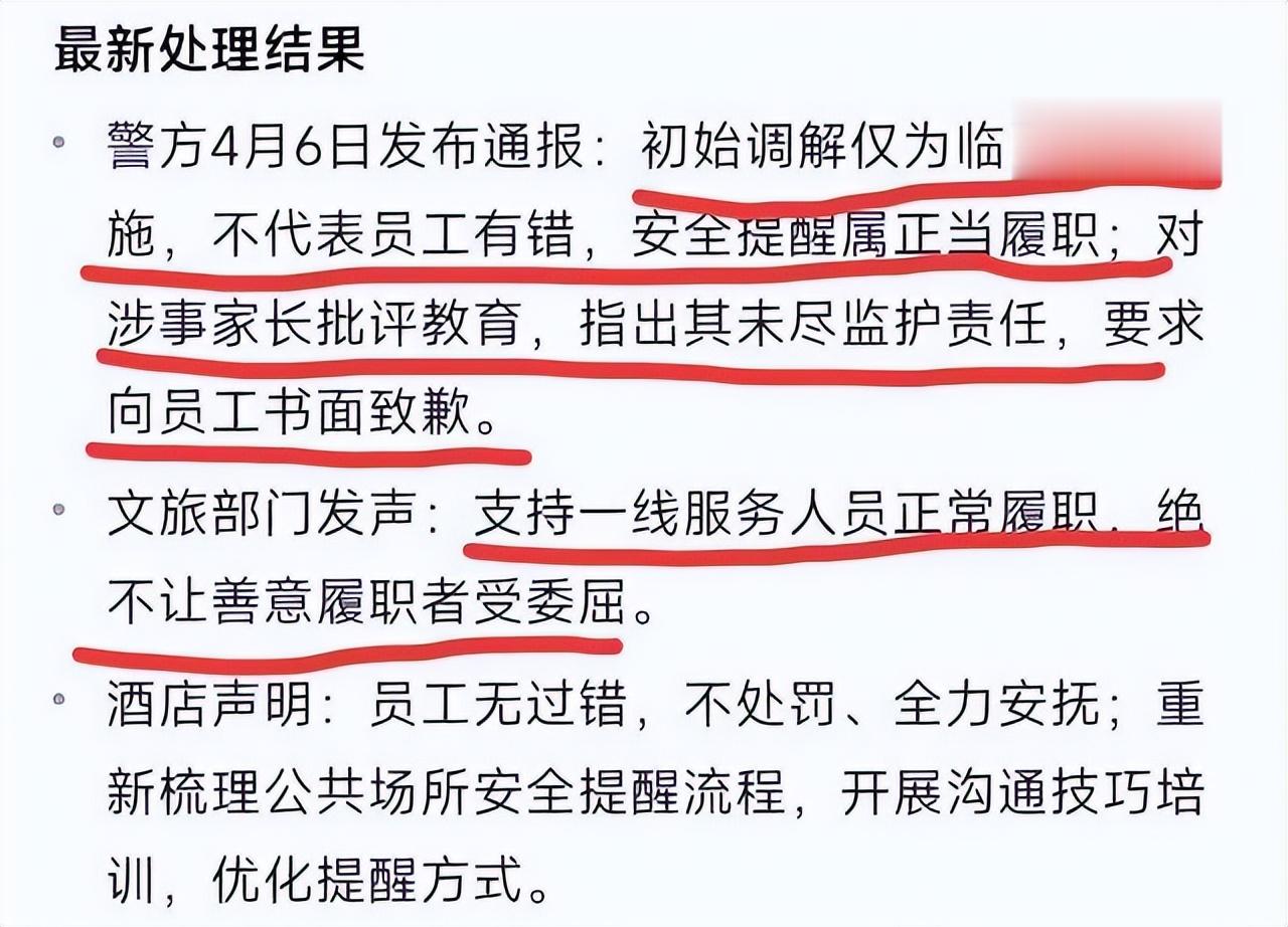 如果当时他不说、不管,等到孩子真的被卡住、受伤了,这位父亲还会不会来追究酒店的责任?答案不言而喻。说得更直接一点,这位员工是在替家长做一件家长本应自己做的事,看管好孩子、制止孩子在危险区域嬉闹,这原本就是监护人的分内之责。可如今,有人替家长操了心,得到的不是一句“谢谢提醒”,而是斥责和报警。