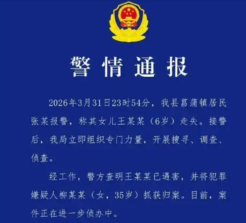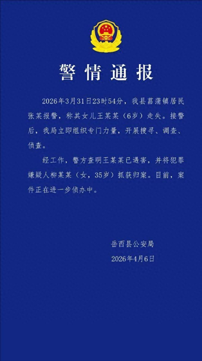 2026年4月6日的夜晚,对无数关心安徽岳西6岁女童佩佩命运的人来说,注定是个无眠之夜。当岳西县公安局的警情通报正式发布时,所有悬着的心彻底碎成了渣——走失7天的佩佩确认遇害,35岁的犯罪嫌疑人柳某某被抓获归案。