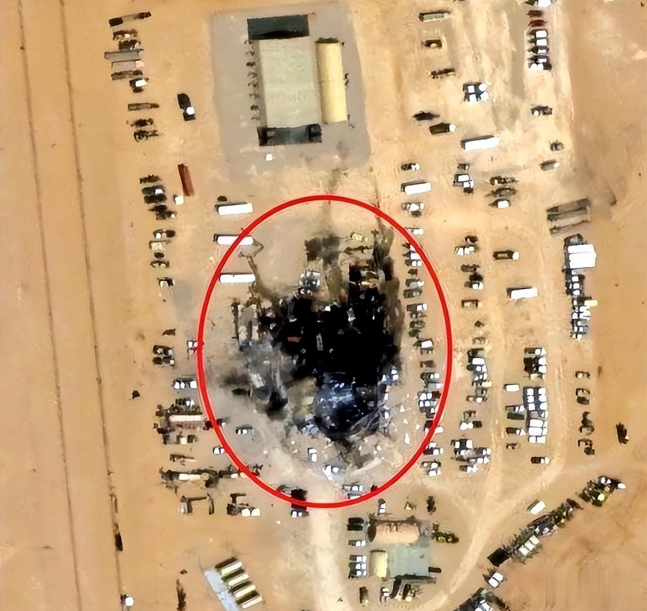 KC-135加油机残骸被拖走了,停机坪上却留下了大面积爆炸烧灼的痕迹。基地东侧停机坪遭到另一次精确命中,一个巨大弹坑赫然在目。南侧建筑群严重损毁,屋顶坍塌了大半。