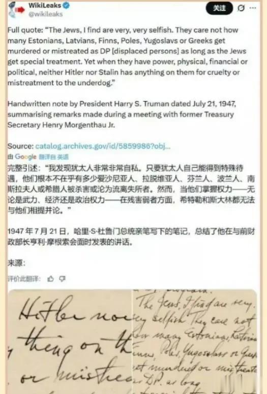 第一层,他对游说政治的本质看得太透了。犹太人确实通过强大的组织能力和游说网络,深刻影响了美国对中东的政策。杜鲁门自己就是亲历者——被逼到日记里骂街,最后还不是乖乖签了字?今天的美国总统,谁不是在重复杜鲁门当年的选择?