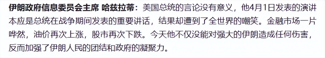 而对于这场持续40多天的冲突,伊朗的反应同样亮眼,他们对于美国的军事威胁,第一反应就是特朗普中计了。