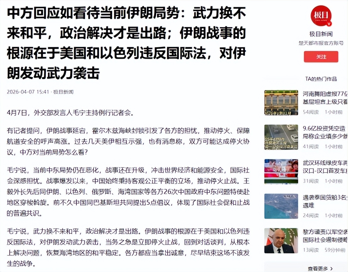 此外,在此轮美伊冲突的紧张局势中,中国的表现格外亮眼,不仅做出了罕见的强硬表态,还全程斡旋各方势力,成为推动美伊停火的关键力量。