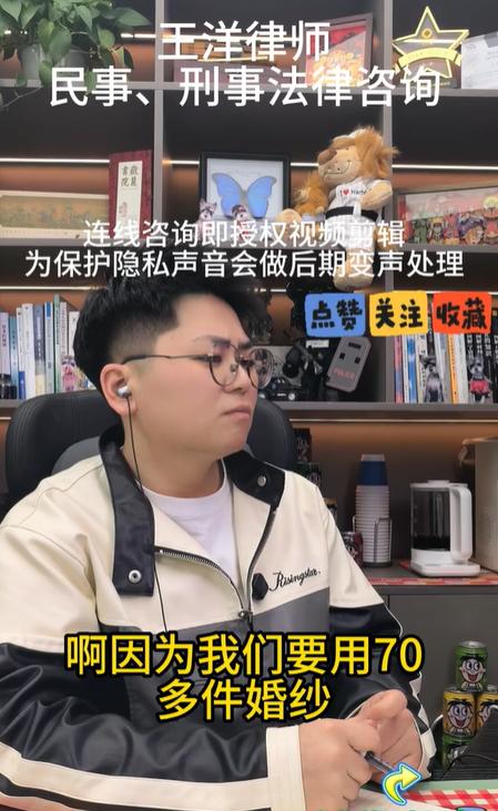 小禾在直播间哭诉时,弹幕里也有人质疑:“70多个人都穿了婚纱,凭什么只让博主一个人赔?大家分摊不行吗?”
