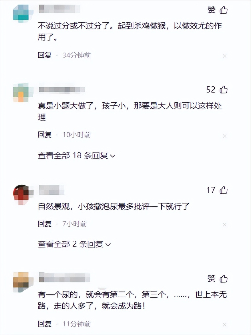 说什么孩子年纪太小,生理上控制不住,周边又找不到厕所,没办法才就地解决,还觉得旁人太多管闲事,没必要小题大做。