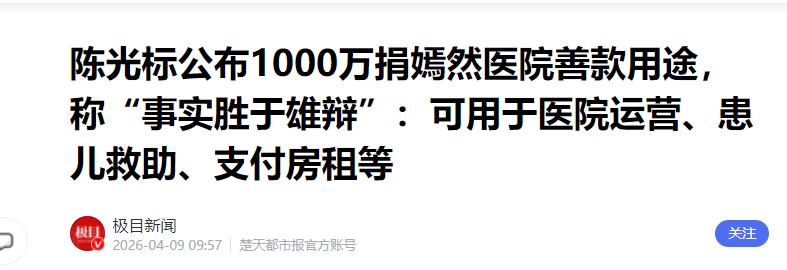 1.极目新闻-2026-04-09——《陈光标公布1000万捐嫣然医院善款用途,称“事实胜于雄辩”:可用于医院运营、患儿救助、支付房租等》