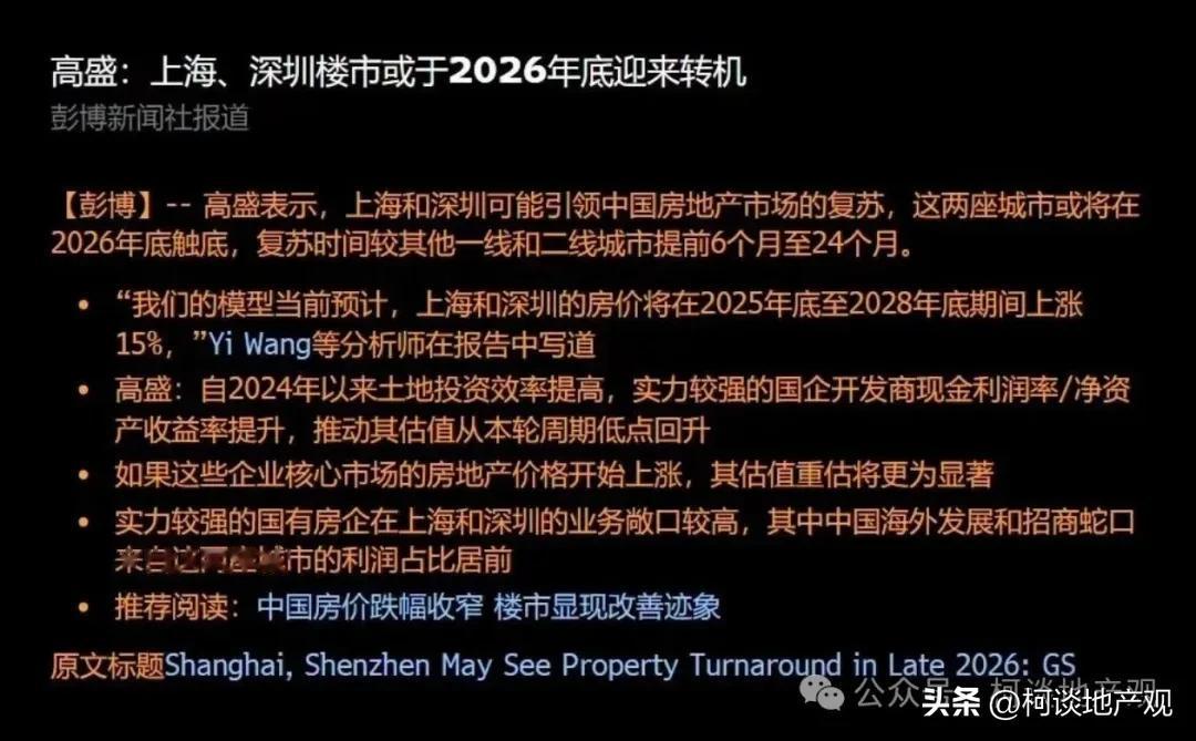 高盛去年底还在看空我国房地产,认为2026-2027年房价还会跌。但是,几个月就开始转向了,可能他们也看到了一些内在的变化吧。