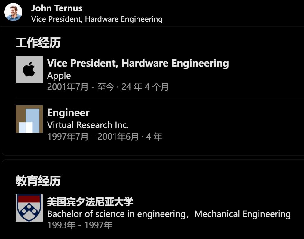 图注:John Ternus的履历