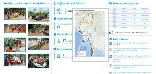 集成风云气象卫星、人工智能气象模型、城市多灾种早期预警工具箱等产品,具备全球灾害及高影响天气监测分析、预报预警、气象服务和信息发布能力,并可以根据重点国家和地区需求提供定制化气象灾害综合预警服务。