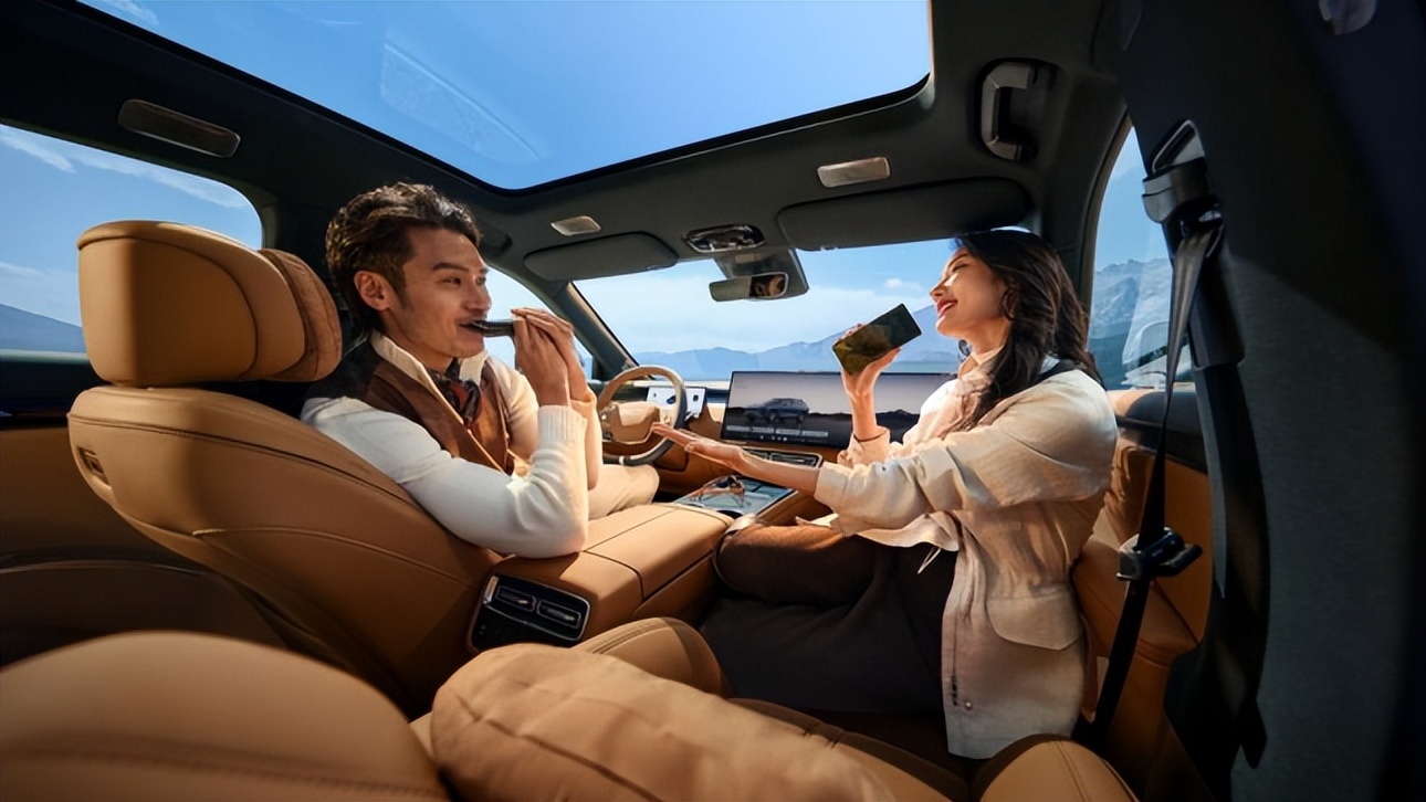 23扬声器“伯牙之音”全景声系统,2880W峰值功率,配合AI声场重建,无论坐在哪个位置都是“皇帝位”。听故事、放儿歌、播音乐,全车沉浸式体验。