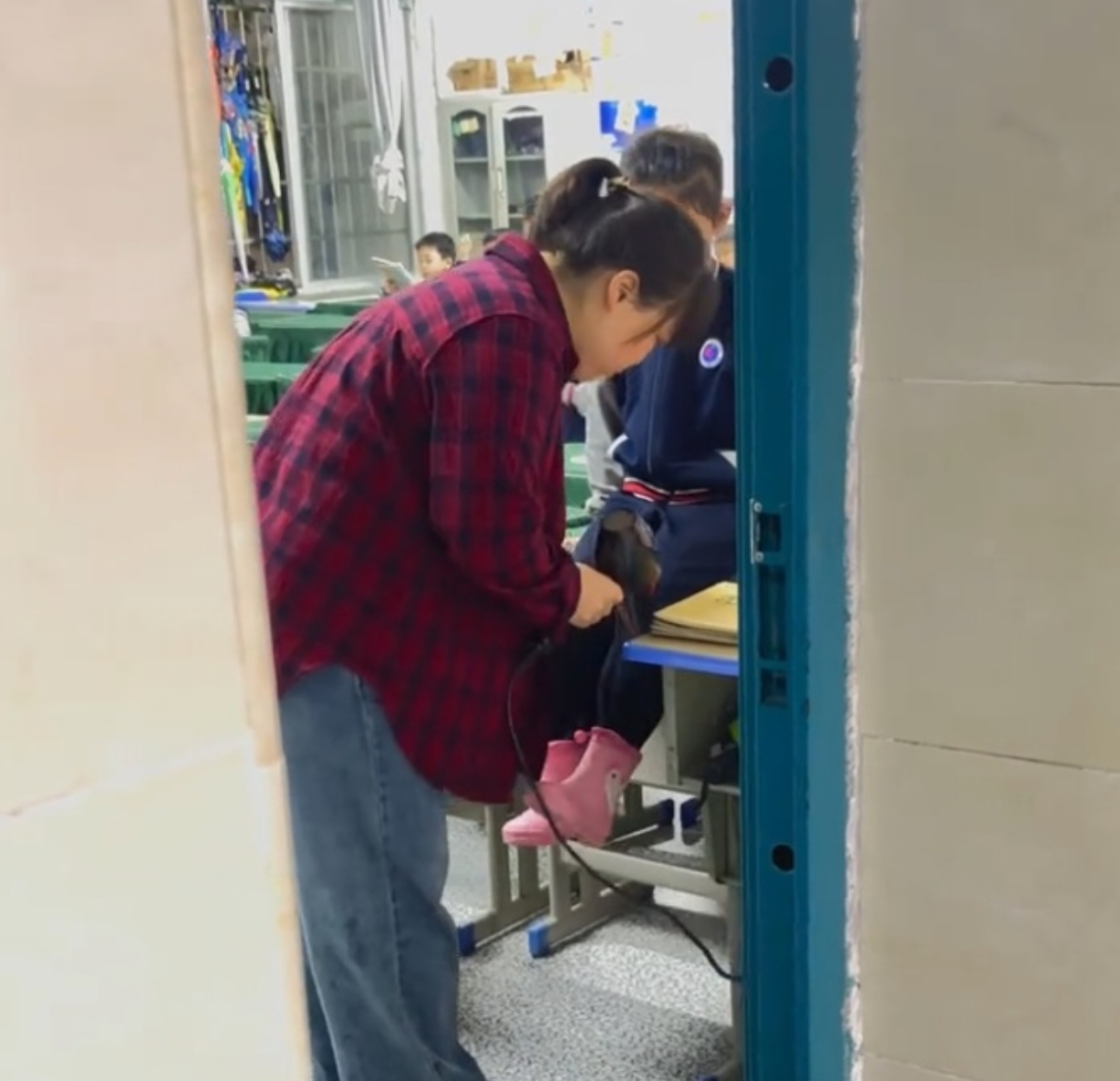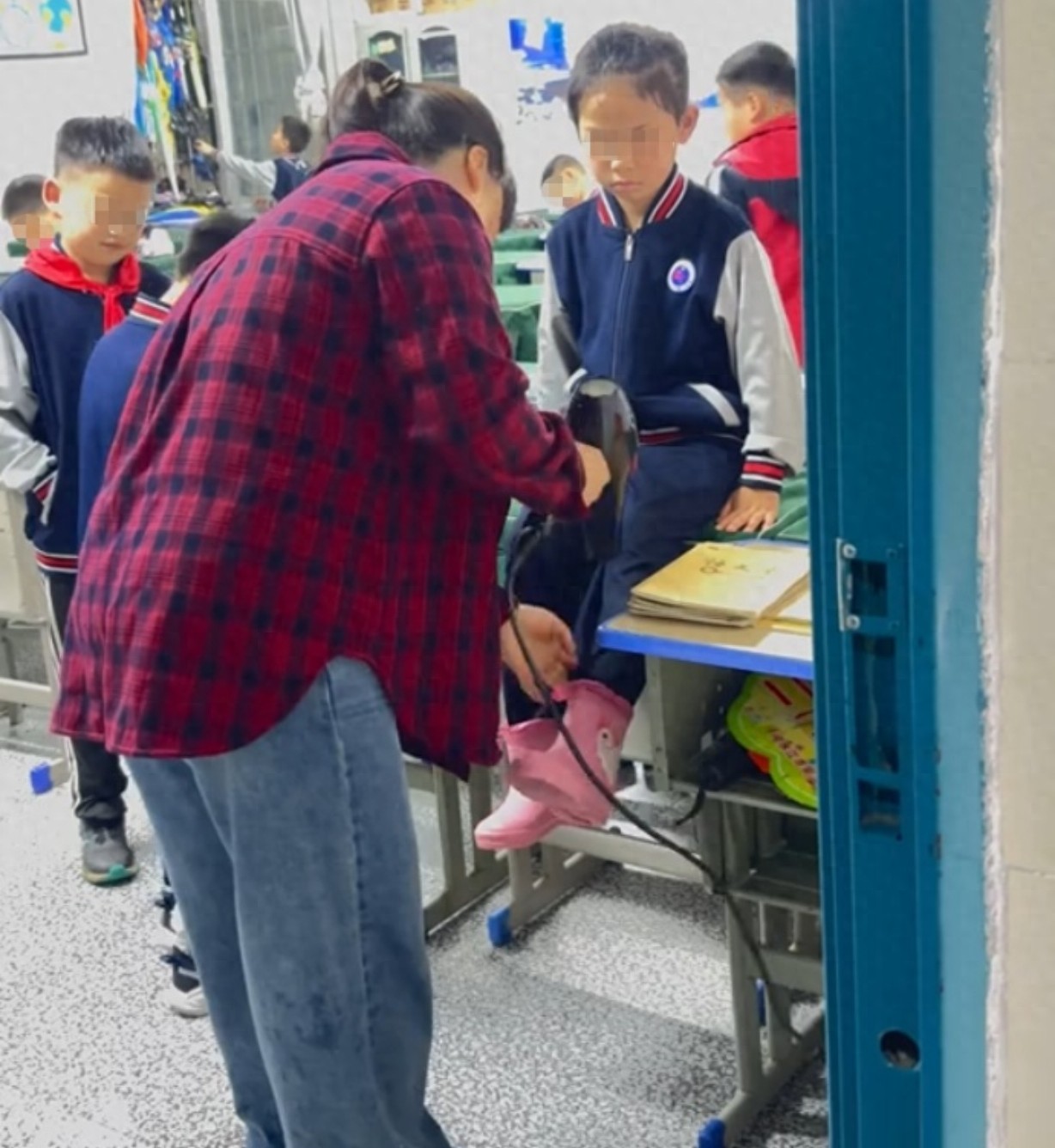 2026年4月,当地迎来暴雨天气,湖南娄底冷水江第二小学的二年级班主任杨平平,看到班上十几个孩子上学途中被大雨淋湿,衣裤都湿透了。她担心孩子们穿着湿衣服上课会着凉生病,便把孩子们分男女带到办公室,拿出自己提前准备好的吹风机,耐心地挨个为孩子们吹干裤管和衣服。这一幕被家长悄悄拍下传到网上,没有华丽的包装,没有刻意的表演,却瞬间打动了无数网友。而让人更动容的是,这台吹风机杨老师已经在办公室备了整整两年,就是为了应对孩子打翻水杯、淋雨湿衣这类突发情况。