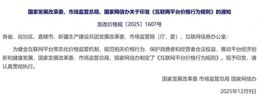 今日起,《互联网平台价格行为规则》正式实施,这是我国首次以部门规章形式对平台价格歧视划出法律红线,14亿消费者终于摆脱被“精准收割”的噩梦,网约车、外卖、电商、视频平台等全行业迎来“价格透明革命”!