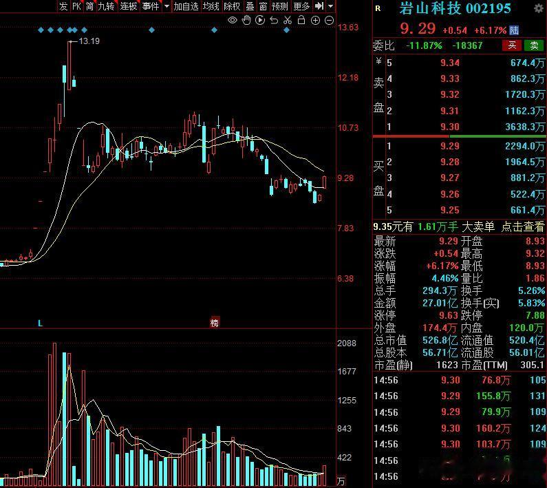 第五家:岩山科技,股价9元左右,市值520亿,主力资金流入超1.7亿。