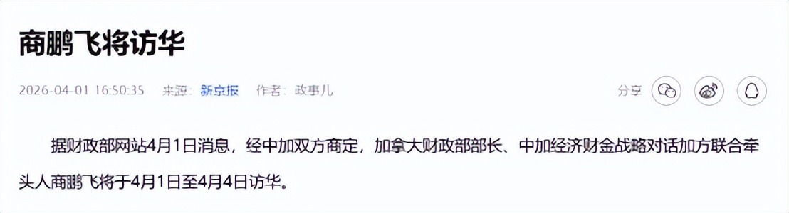 01打破沉默的3天4月1日,加拿大的财政部部长商鹏飞带着一帮人悄悄地飞到了北京,有意思的是,人到了之后,接下来整整3天都没什么大动静。