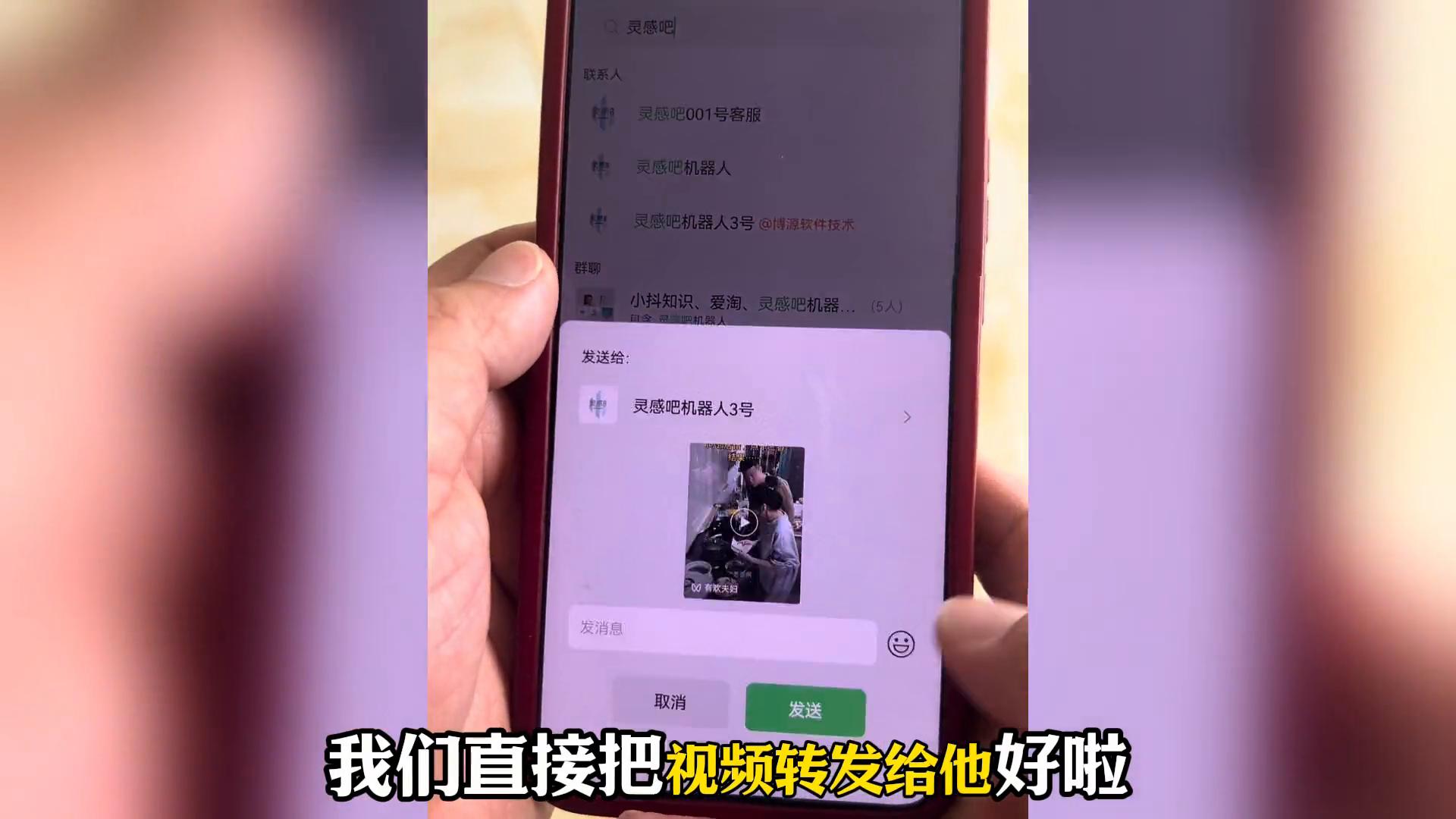 ·直接找到这个叫灵感八,输入这三个字,找到机器人三号,看到它了吗?直接把视频转发给它。