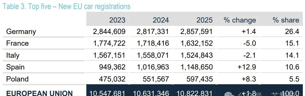 近日,欧洲汽车制造商协会(ACEA)发布了《2025年全球及欧盟汽车行业》报告。根据该报告显示,2025年,欧盟从中国进